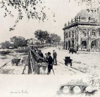He began exhibiting his engravings, etchings and pastels in Paris in 1894 at the Salon des Artistes Français, and quickly established himself as an engraver and illustrator, mostly of Paris scenes. He also gained a considerable reputation for his work in sculpture, usually signed with the pseudonym ‘Hirne’. In 1898 he became a full member of the Societe Nationale des Beaux-Arts and, in 1922 was awarded a Gold Medal and the Chevalier de la Legion d’Honneur from the French government.
