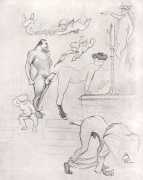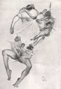 Before he had completed the illustrations, he was diagnosed with tuberculosis, and during 1905 spent several months in Switzerland where he had surgery in the vain attempt to stop the illness that was laying waste to his lungs. He recovered from the surgery, but his powerful drive could not overcome the tuberculosis. He had to slow down his hectic work schedule, but continued to produce original and disturbing art, including Visions érotiques in 1908. Two years later he was dead, a tragic end to a uniquely creative talent.