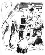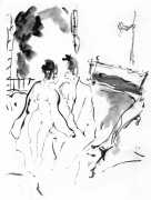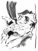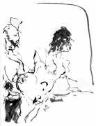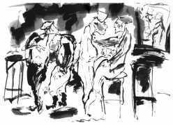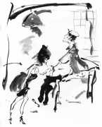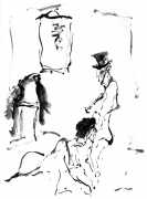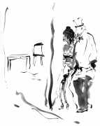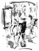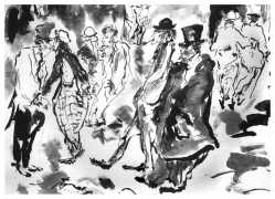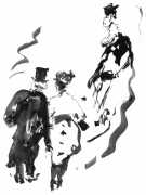 The French artist Hippolyte Romain grew up in Montmartre in Paris, and when very young he started work in a delicatessen. He was a naturally gifted draftsman, and soon began to sell his drawings in the streets of Montmartre where, discovered by an editor of Vanity Fair, he was commissioned to produce a series of illustrations of fashion shows in Milan. This was the beginning of a successful career as illustrator and artist, developing his own satirical style in the tradition of Honoré Daumier and Chas Laborde.