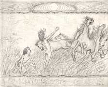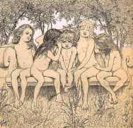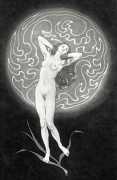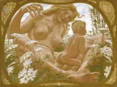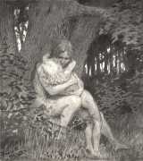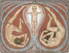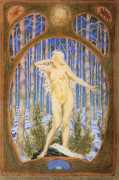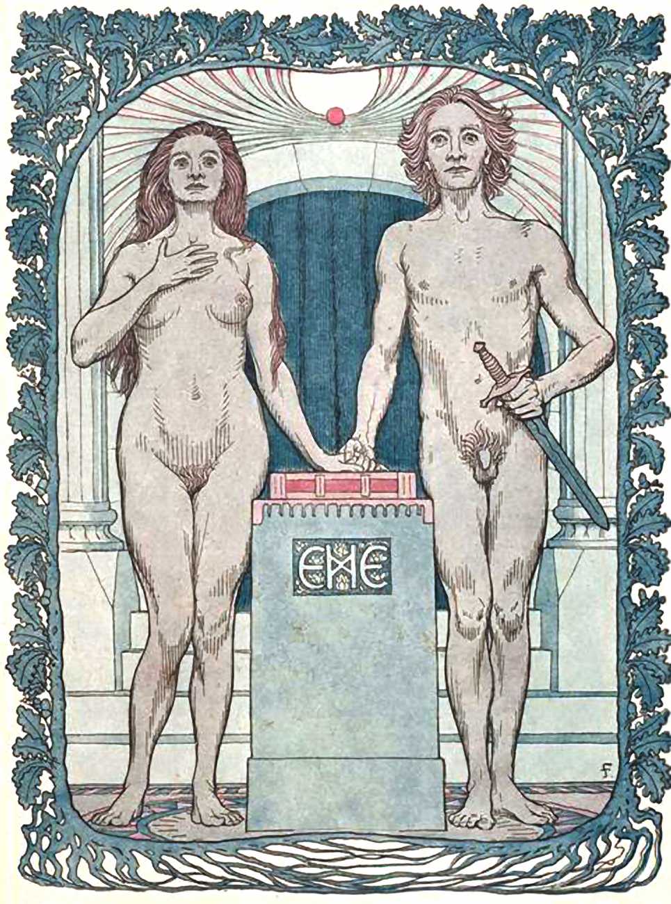 Born the son of a confectioner in Lübeck in northern Germany, Hugo Reinhold Karl Johann Höppener demonstrated artistic talent at an early age. Around 1886 he met the artist and ‘apostle of nature’ Karl Wilhelm Diefenbach (1851–1913), and joined Diefenbach’s free-thinking rural commune at Höllriegelskreuth near Munich. On Diefenbach’s behalf Höppener served a brief prison sentence for public nudity, earning him the name Fidus – ‘the faithful one’ – from Diefenbach. From that point Höppener used the pseudonym Fidus for all his work.
