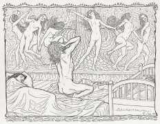 In 1892 Höppener moved to Berlin, set up another commune, and worked as an illustrator on the magazine Sphinx. His work appeared frequently in Jugend and other illustrated magazines. He created many stylised drawings, especially for book decoration, as well as ex-libris, posters and prints. He was one of the first artists to use advertising postcards to promote his work. Though bisexual rather than gay, Höppener also contributed to the early homosexual magazine Der Eigene, published by Adolf Brand.