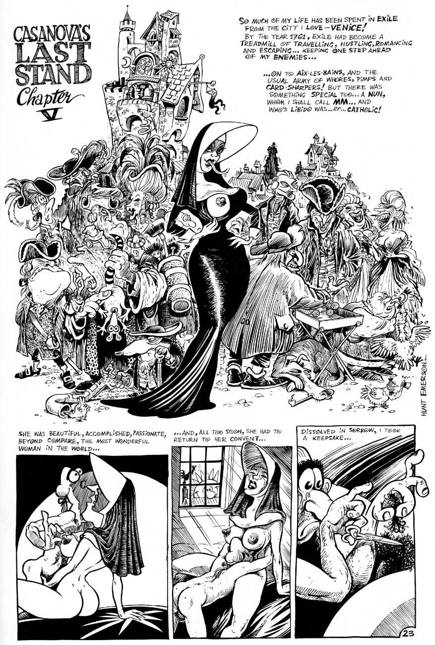 In the 1980s Emerson became associated with Knockabout Comics, a publisher known for edgy and subversive content. For Knockabout, Emerson created several of his most iconic works, including The Adventures of Little Plum, Calculus Cat, and humorous adaptations of literary classics such as The Rime of the Ancient Mariner and Frankenstein.