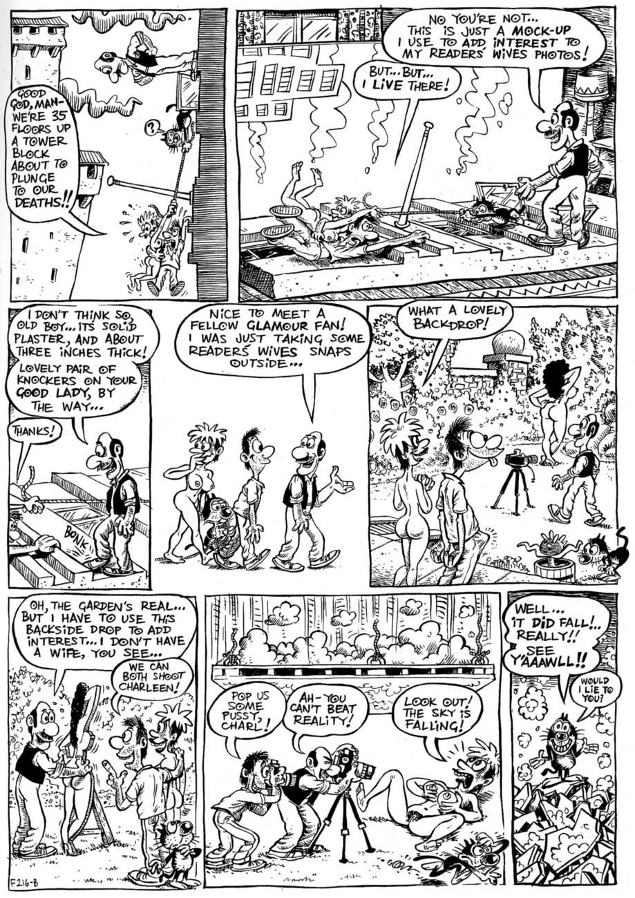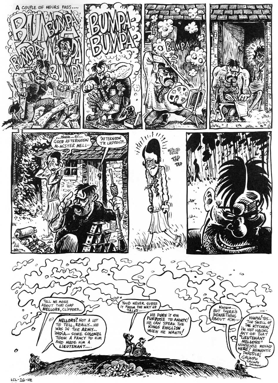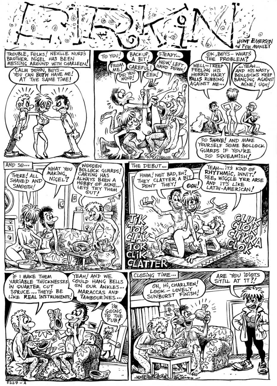Emerson’s earliest strips in the 1970s appeared in British small press comics including Graphixus, Brainstorm Comix, Moon Comix, Yikes, Animal Bite Comix, Streetcomix, Warrior and Fish. A trip to the USA put Emerson in touch with the underground comix publisher Rip Off Press, which published his Thunderdogs title.