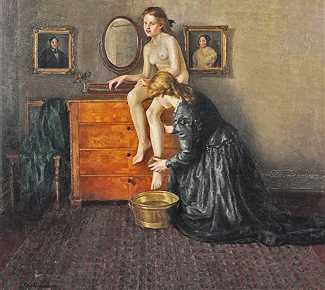 Ida Teichmann, born Ida Fries, grew up in Frankfurt-am-Main in a well-off middle class family; like her cousin Milly Marbe-Fries (1876–1947), Ida was a talented artist. Ida (she usually called herself Idi) studied drawing and portraiture for three years with Julius Maria Jakob Welsch before continuing her studies in Nottingham, England, and Naples. Returning to Frankfurt in 1903, her early work was mostly oil paintings of domestic scenes, usually including mothers and daughters. This was to become her abiding interest as the main subject of her work.