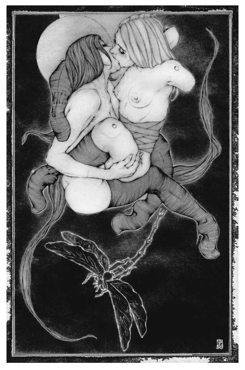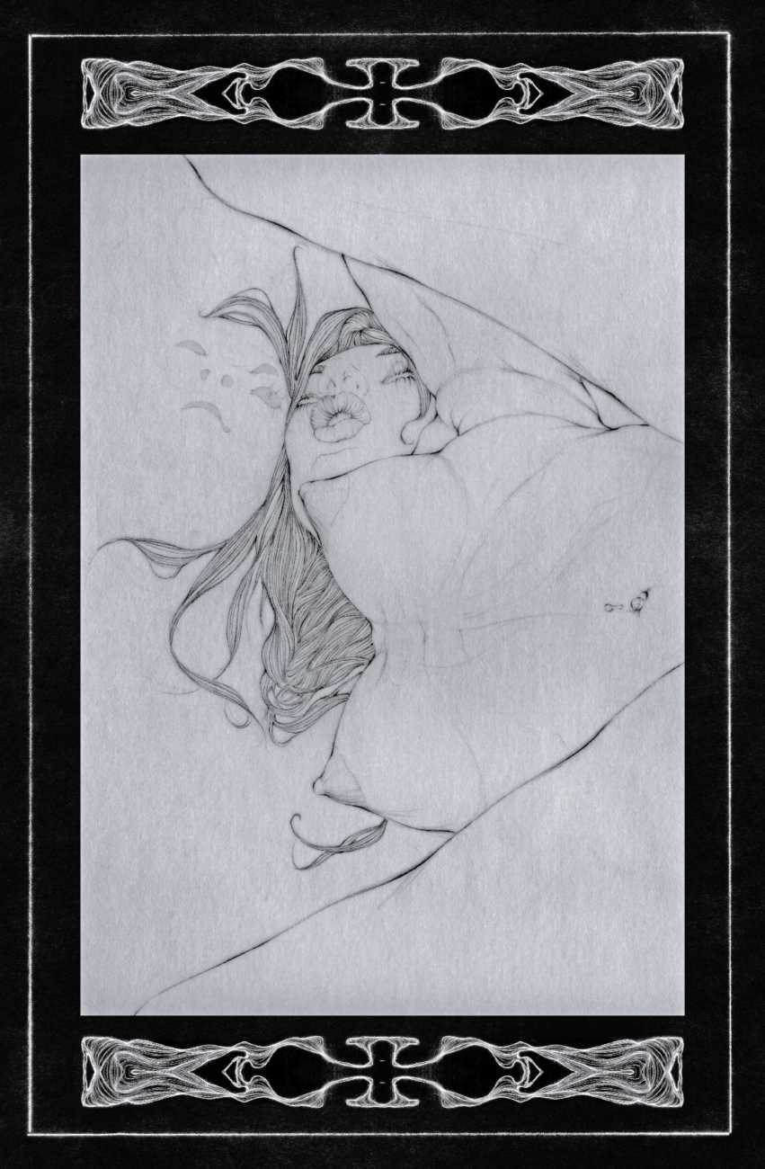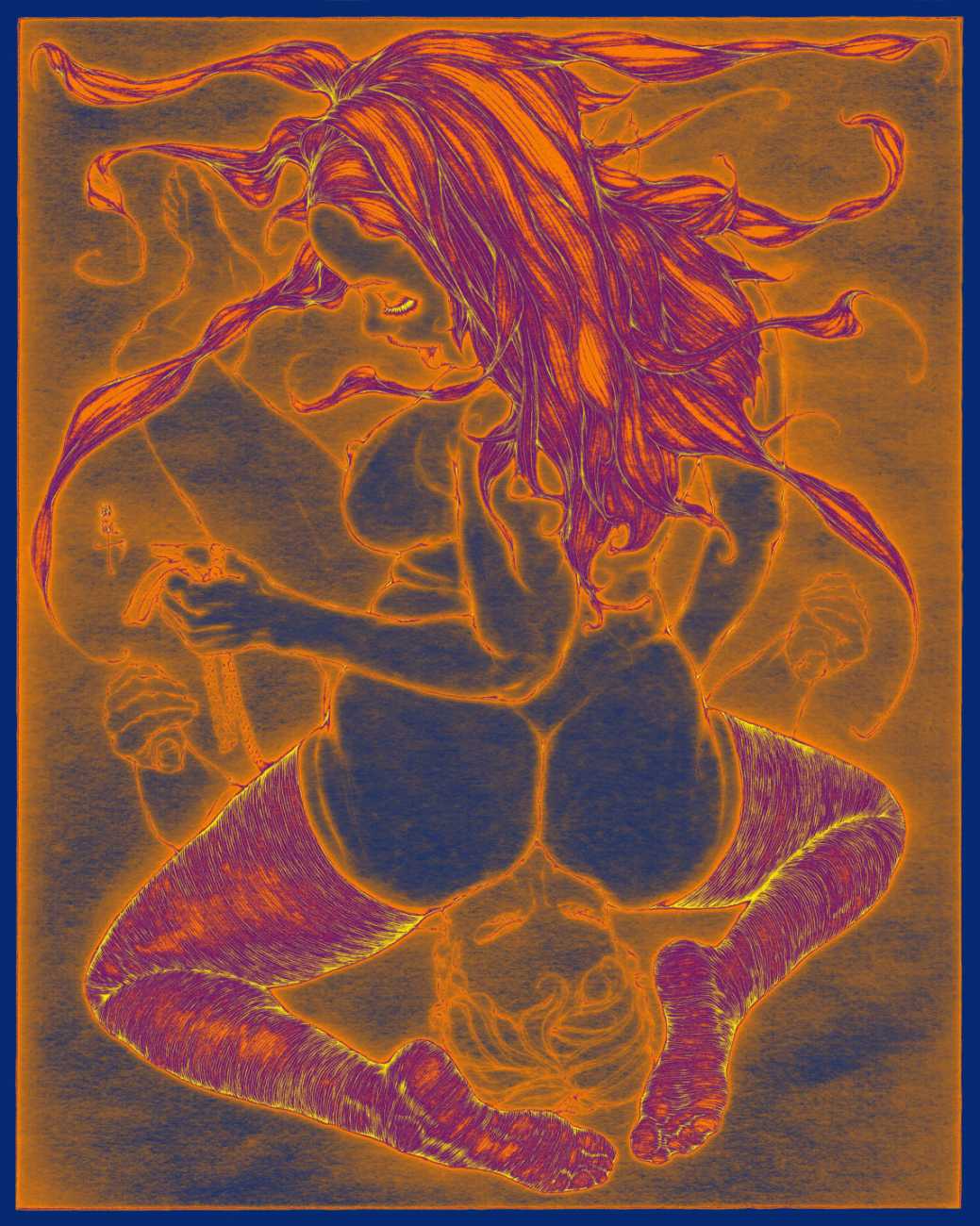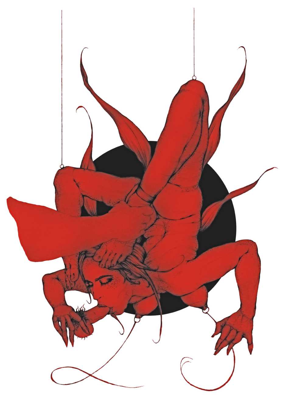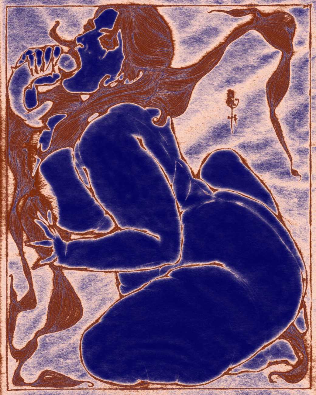 He started sharing his work online in 2005, and his first illustrated book, The Book of Hours, was published in 2010. Most of his recent work is scanned and then enhanced digitally. Much of his material originates from mainstream porn sites, though more as an inspiration than any sort of direct copy. As he explains, ‘I mainly work with these images because I am looking for an idealising effect. If everything goes well, the original imagery is elevated to an ethereal level, contrasting with the bluntness of the original photograph, visualising the shifts between object and desire, and revealing the fact that phoniness often holds an essential truth. Though a figure may be recognised as being in a “porn pose”, the authenticity of my interpretation is essential. My interpretation is not meant to be a portrait, more an expression of adoration, an inscrutable quality which affects the viewer, and which might even carry traces of religious faith and divinity.’