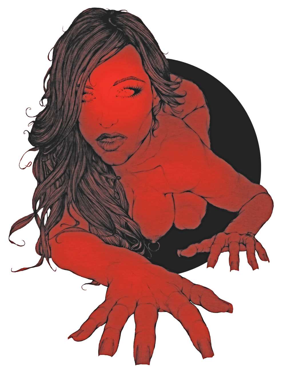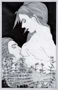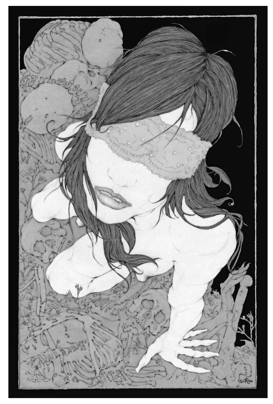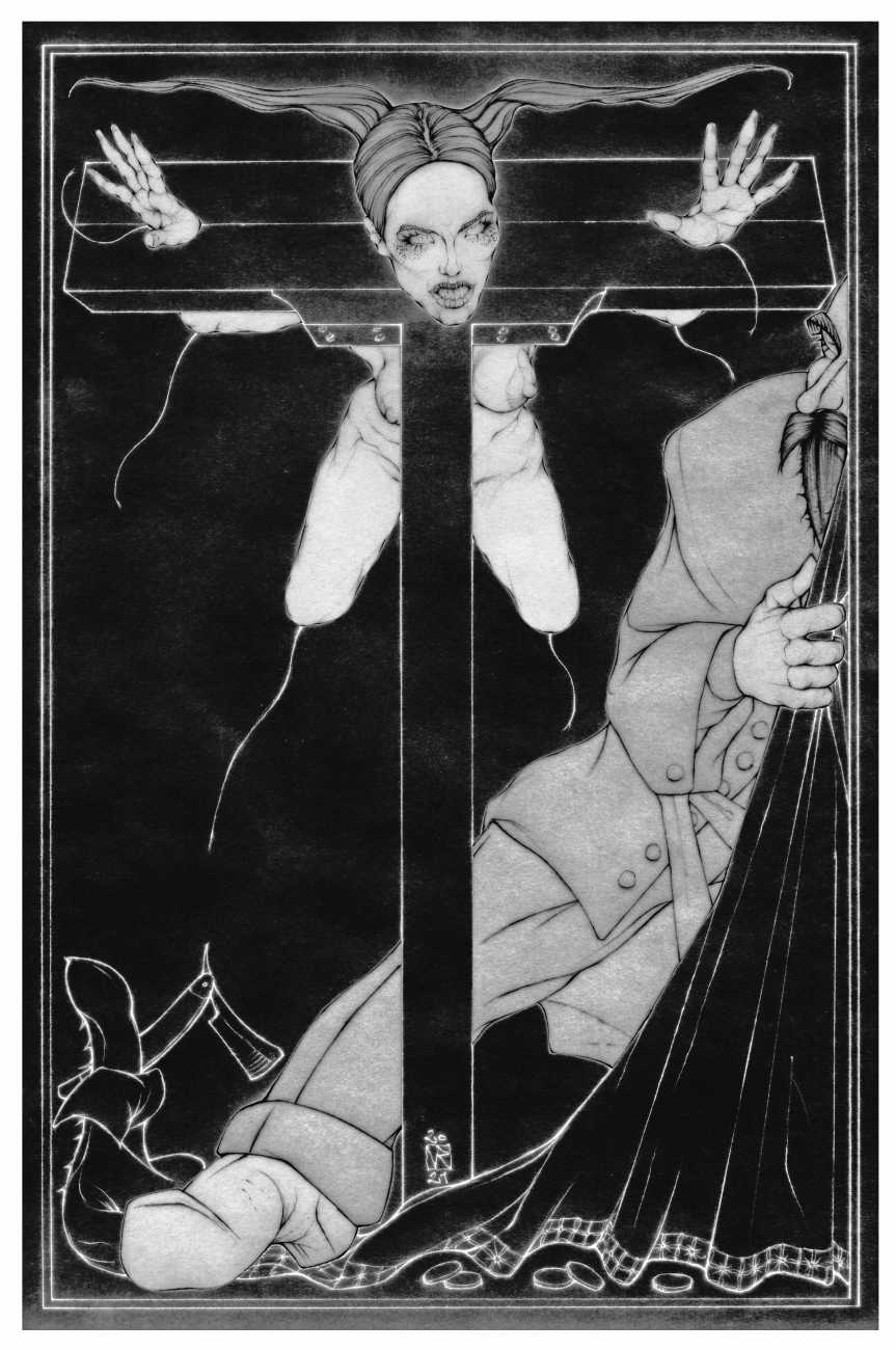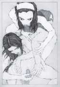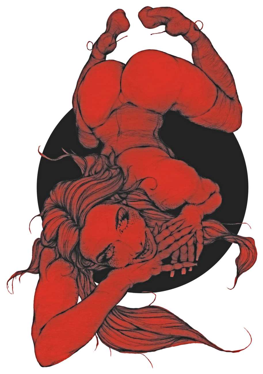 Fellow artist Kayla Freedman has written of his work, ‘Jan van Rijn has a very distinctive style, taking more standard erotic model poses and rendering them in an exaggerated and sexually corpulent fashion. There are no anorexic waifs – the bodies are fleshy and unashamedly sexual. His figures seem to revel in their exhibitionism and wantonness. His erotic drawings cover straight aspects of sexuality, but then also stray into more fetishistic iconography – high heels, long nails, lingerie, bondage, piercing and transsexuals. The style of van Rijn’s erotic art is very simple, just black, white and grey, but while these images may at first seem bold and simple they are anything but. The quality of the lines and shading is deliberate, the detailed layering of fine lines in the hair, the lips, the nipples, but also the careful rendering of the delicate folds. And the drawings which push the distortion of angle and view, or where the body seems to expand to fill every crevice of the canvas – it is this attention to detail where the work becomes art.’