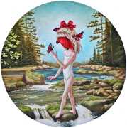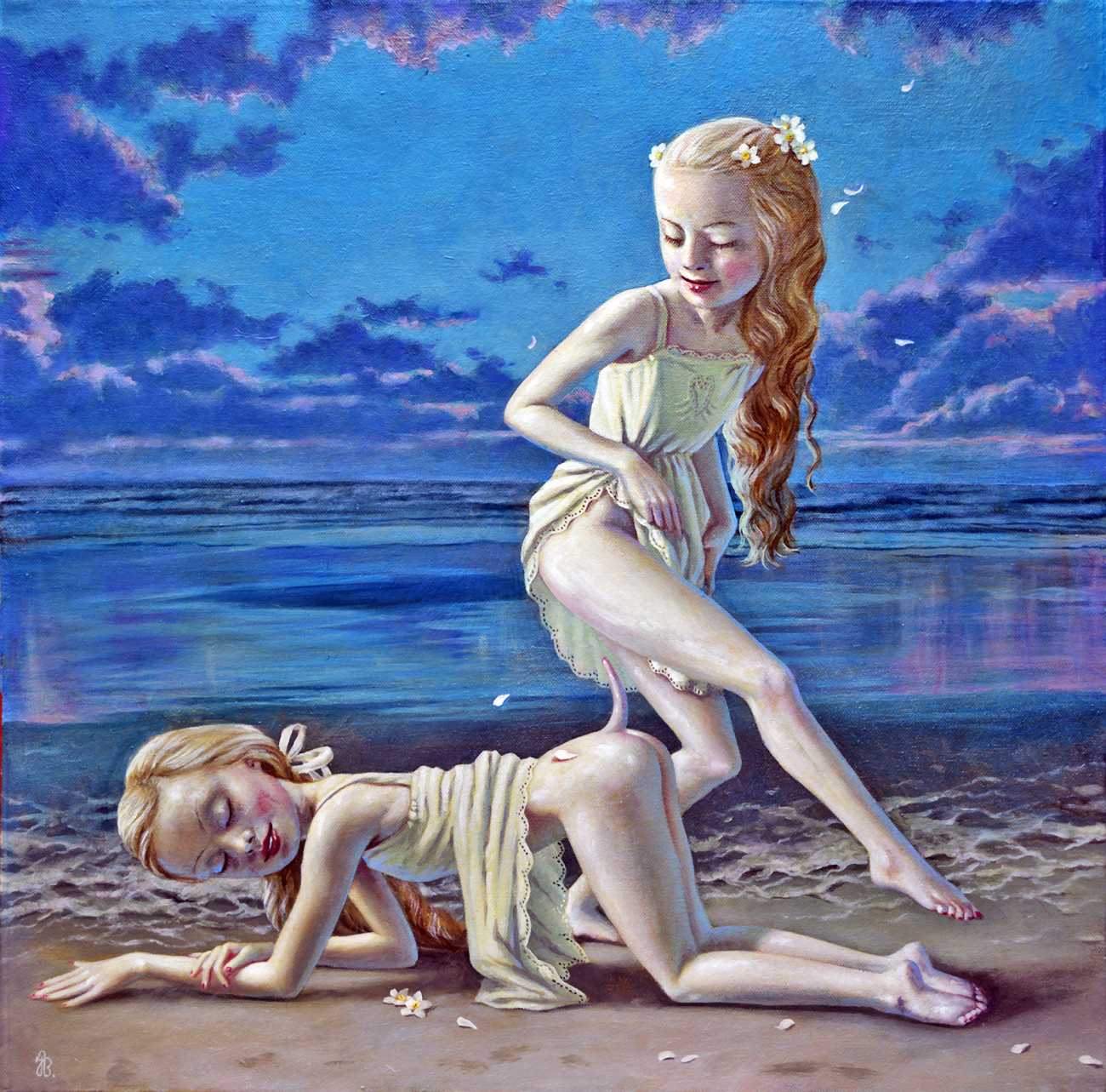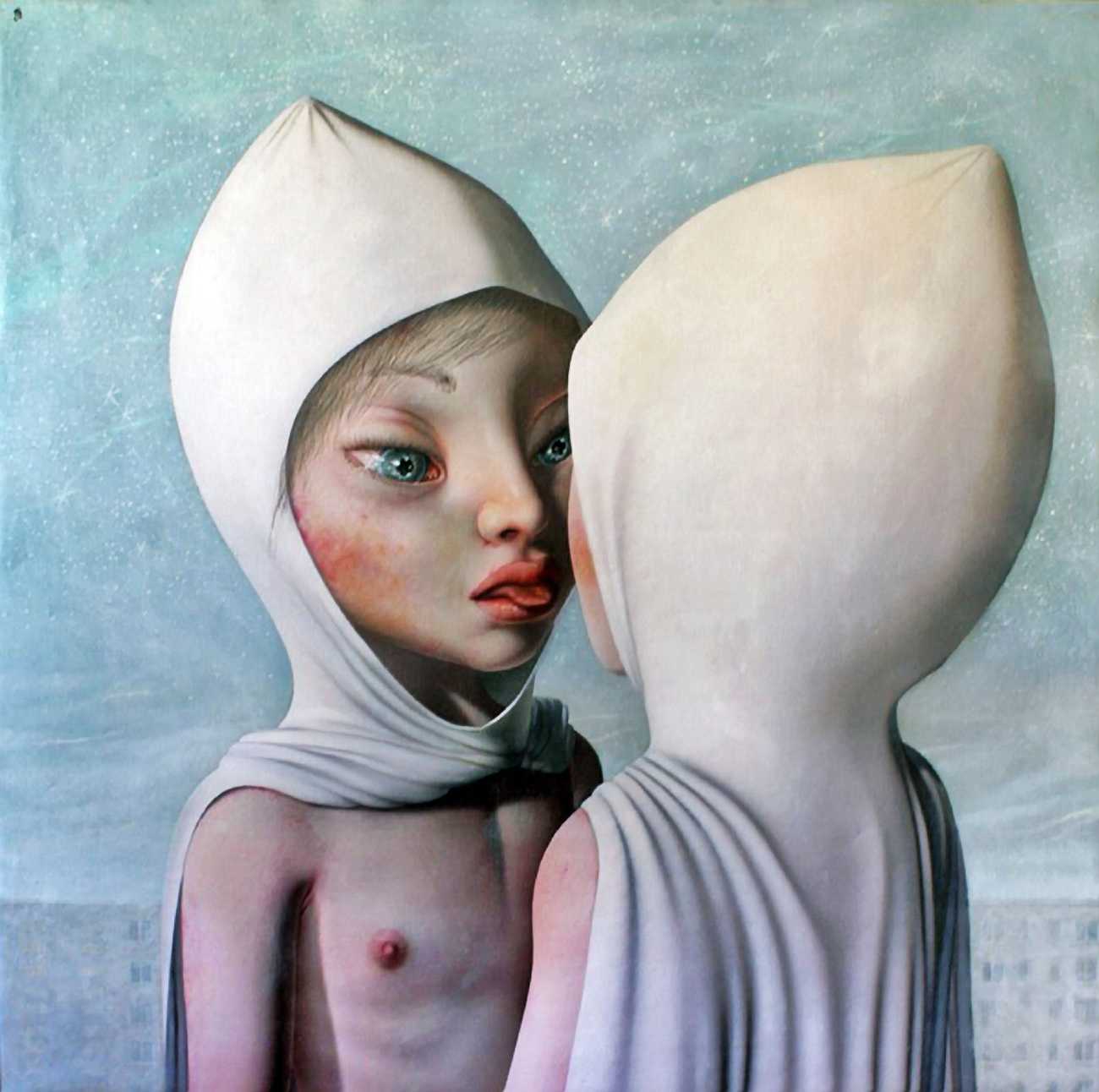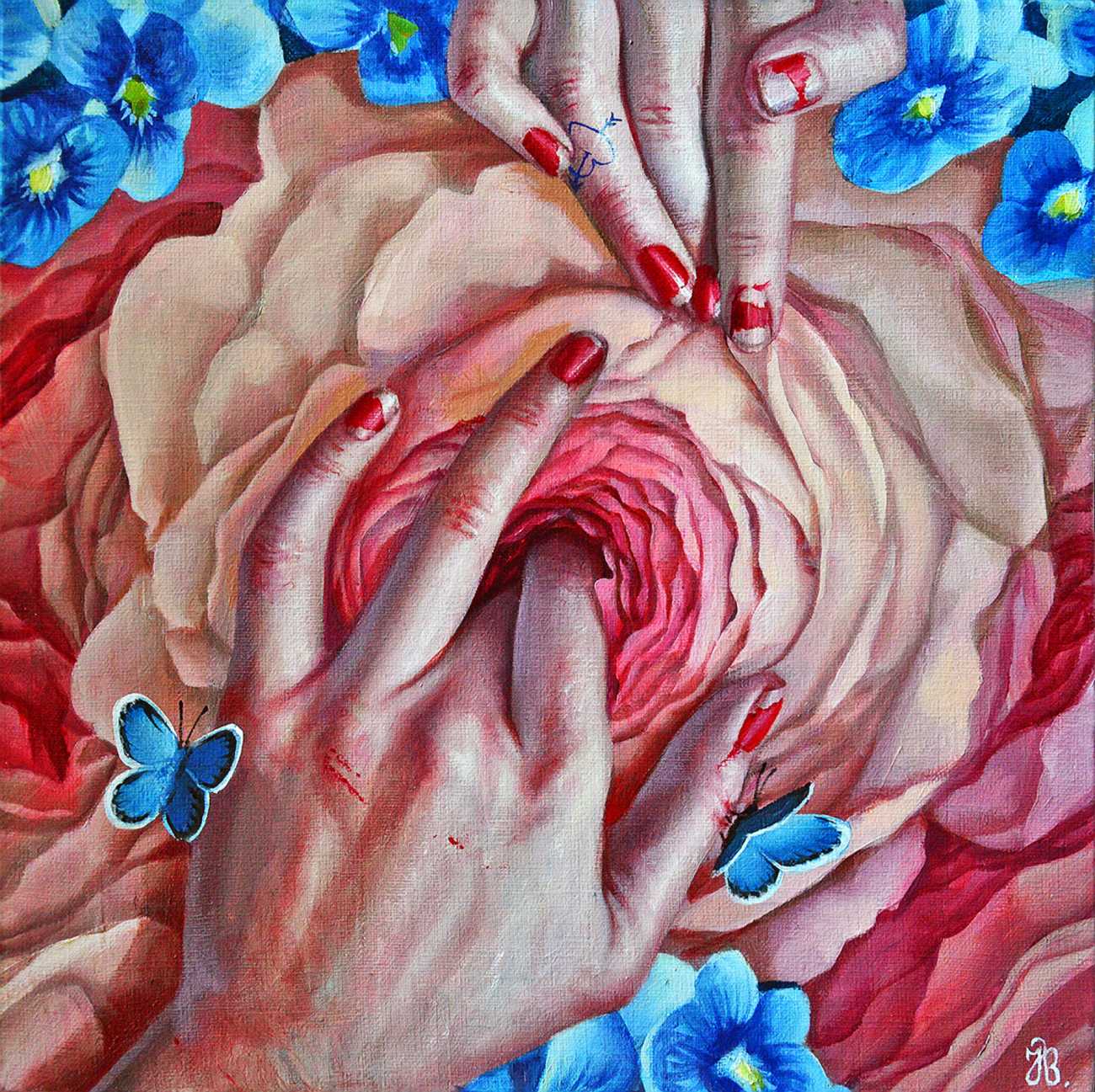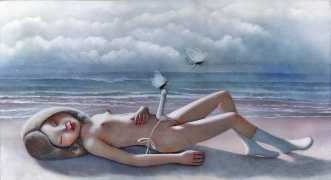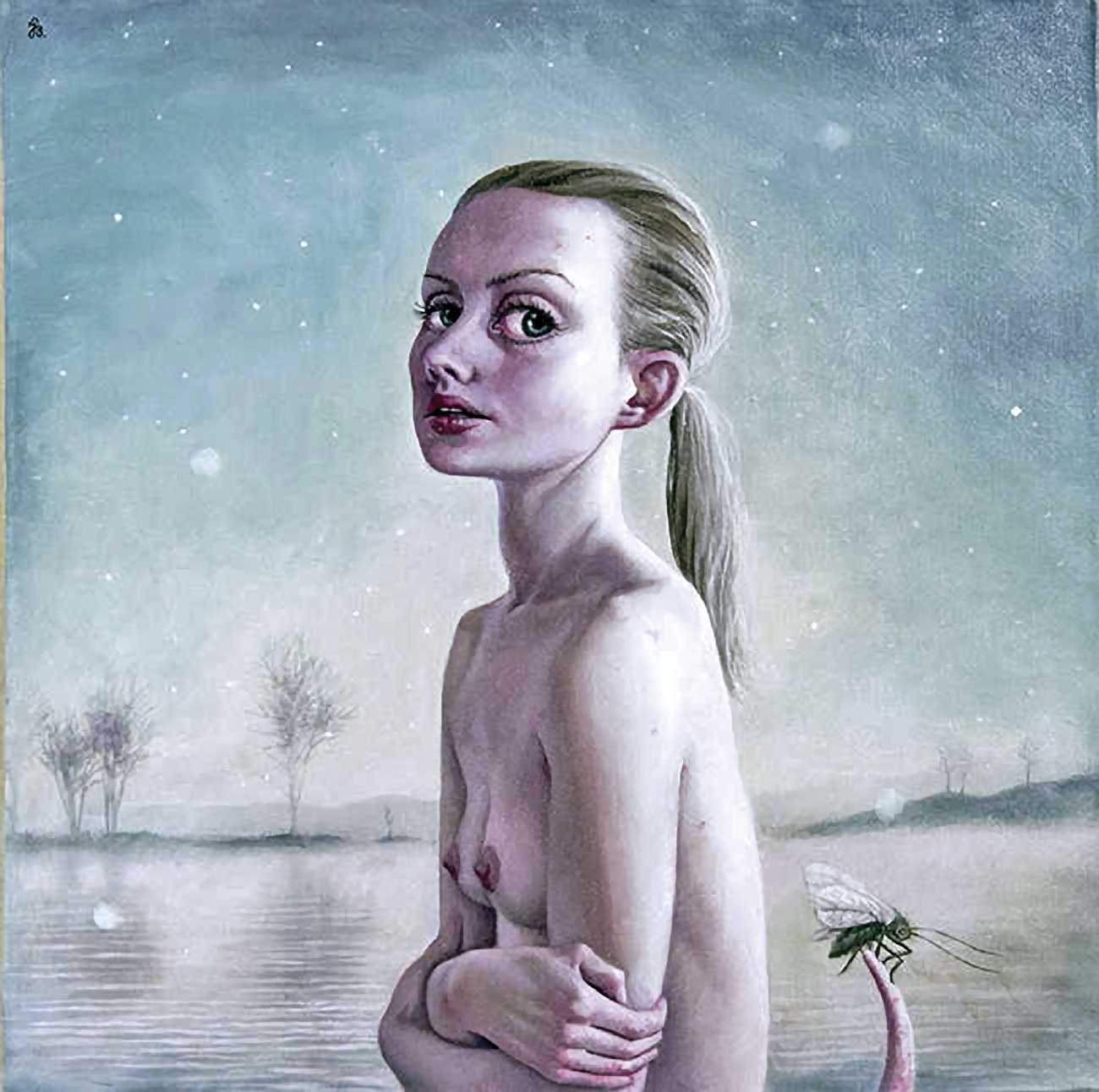 Her main interest is visual art with a strong narrative and depictions of women, mostly using the traditional medium of oil painting on canvas. She has also explored other mediums like drawing, animation, mixed media sculpture, installation and digital art. Her focus is the internal space and state of the human soul – dreaming, longing, loving, suffering – the vast range of emotions the human condition offers, and the transcendence of them, resulting in growth and self-discovery. Much of her work is unapologetically autobiographic.