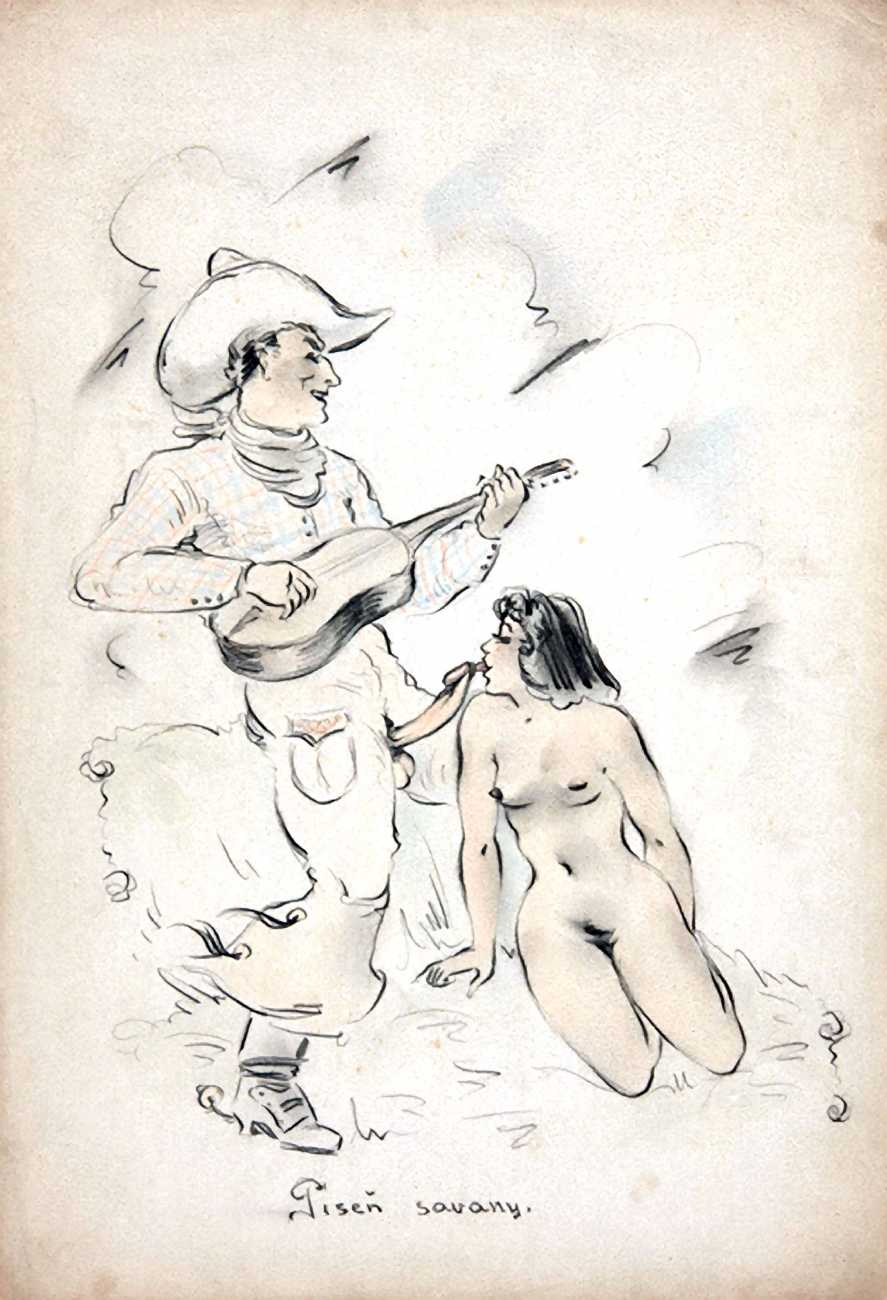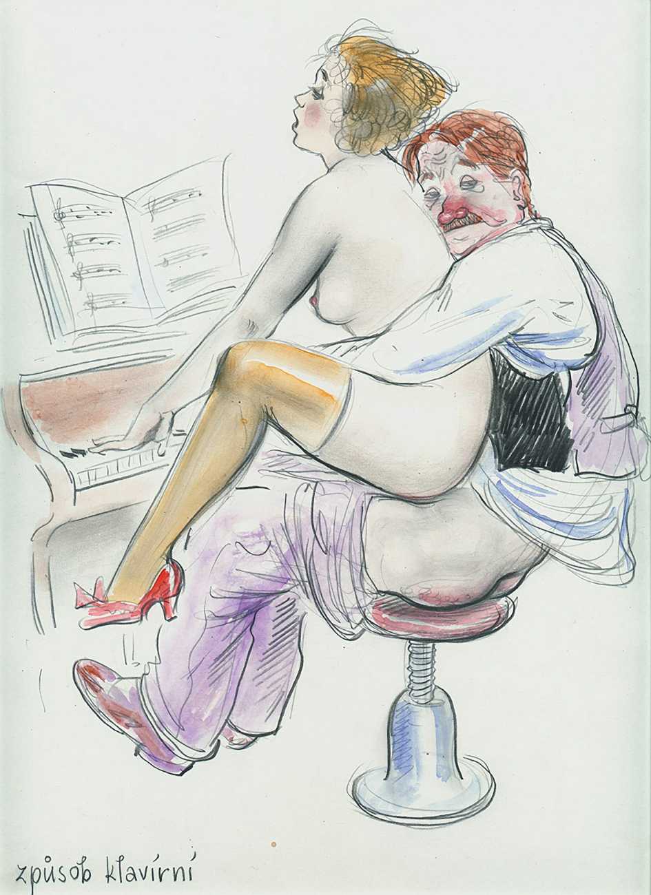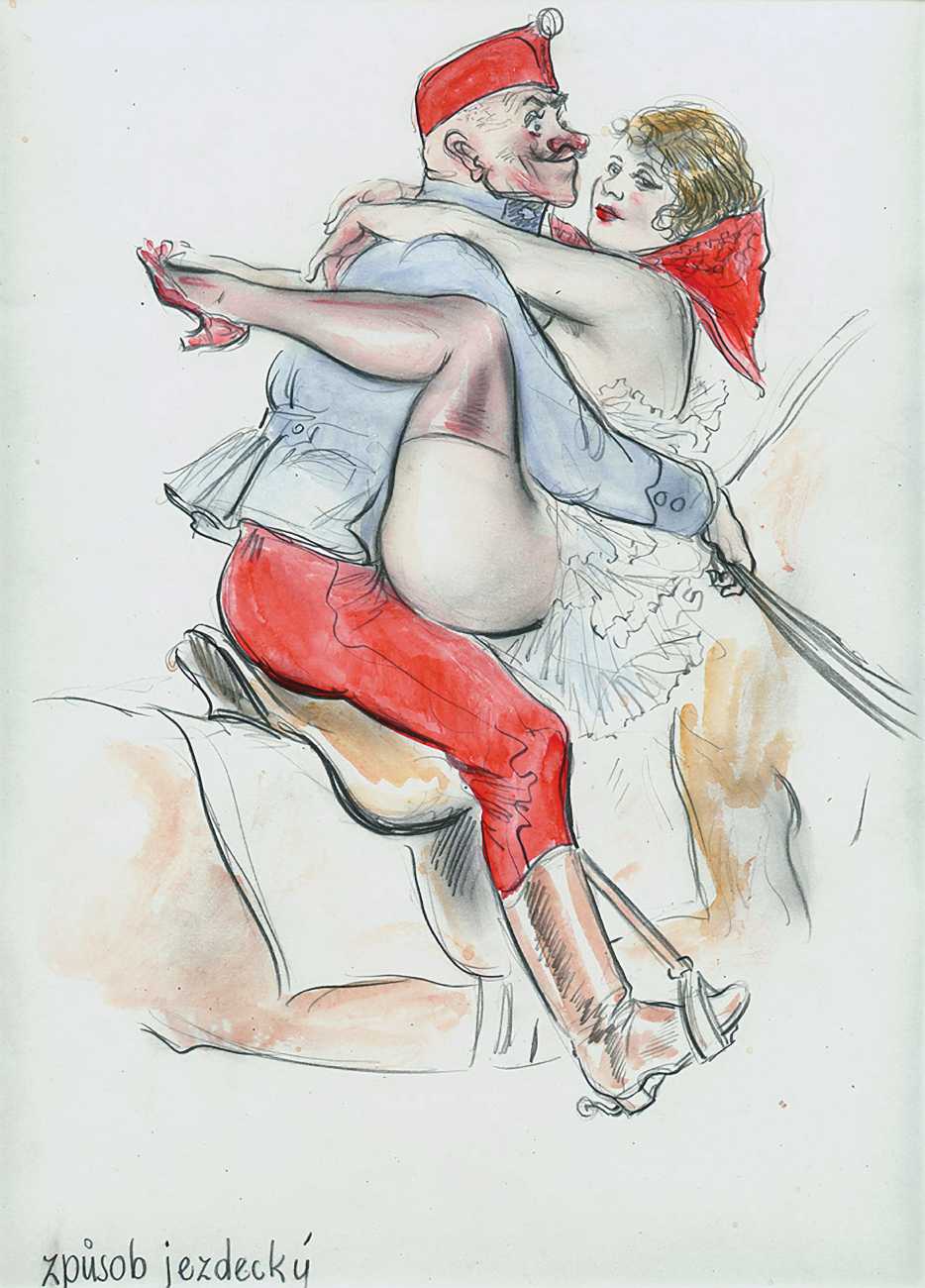 Though he did sometimes paint portraits and landscapes, he is best known for his humorous portfolios of erotic drawings, for which he found a ready market, and his slightly risqué prints of Czech dancers, which sold well to tourists visiting Prague.