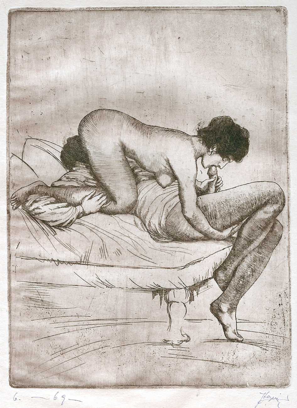 The bibliographer of French erotic literature Jean-Pierre Dutel goes a little further, placing de Lapin in Eastern Europe in the mid-1920s, and Prague has been suggested. While the artist may have been Czech, the work is titled and captioned in French, so a Parisian connection is likely.