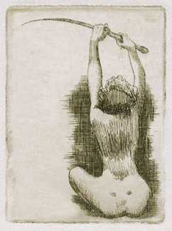 Nobody knows who the mysterious Jer. Bar. de Lapin is, or exactly where and when the artistically accomplished and psychologically disturbing portfolio of etchings they produced was published. If there are any clues in the pseudonym, it might be the juxtaposition of Jer(emiah), Bar(tholemew), and Lapin, French for rabbit. Jeremiah is traditionally associated with mournful lamenting, Bartholemew (from the Hebrew ‘son of the furrow’) with manual labour, and rabbits with zealous breeding, so ‘mournfully lamenting the manual labour of zealous sex’ is maybe the closest we shall ever get to their true identity. Given the male angst of many of the prints, we can probably safely say that the artist was of the masculine persuasion.