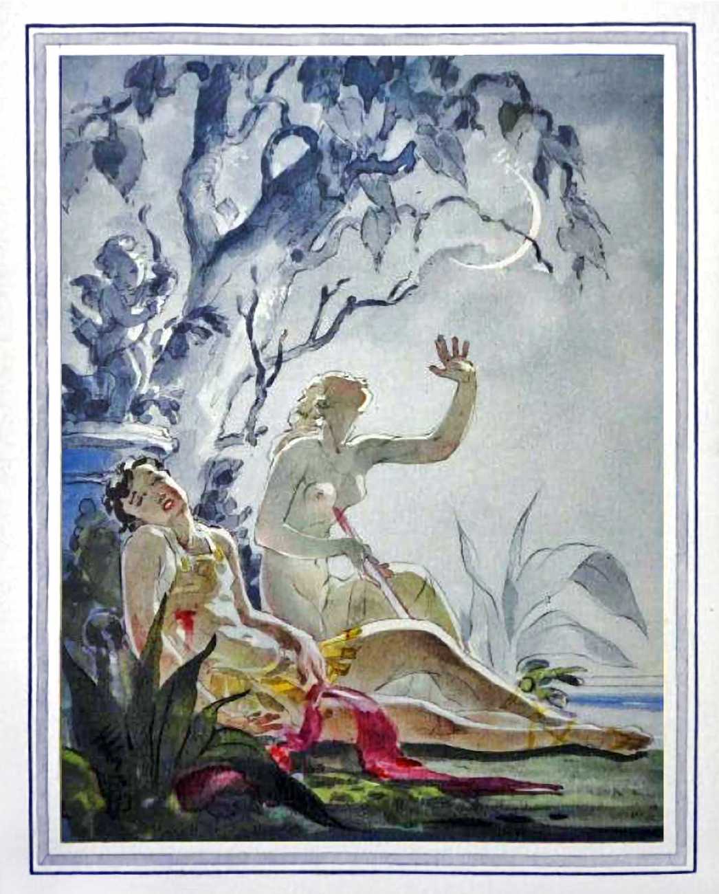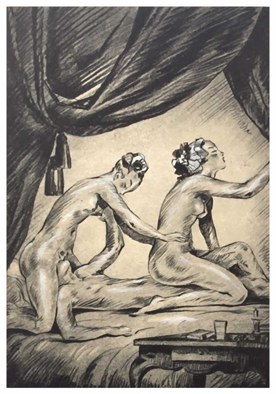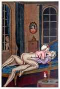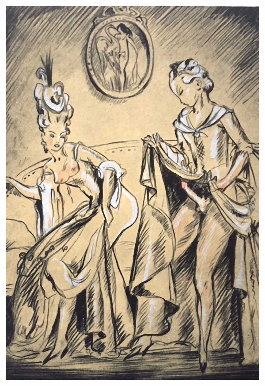 By the late 1920s, when Mercier started exploring his erotic alter ego, he had started working more in book illustration; it is probably no coincidence that it was about this time that he met Marie Guillory, who he married in 1933. They had a daughter, Sylvie, and in 1942 he illustrated a volume of folk tales for her, which was published by Éditions Marcus de Nantes.