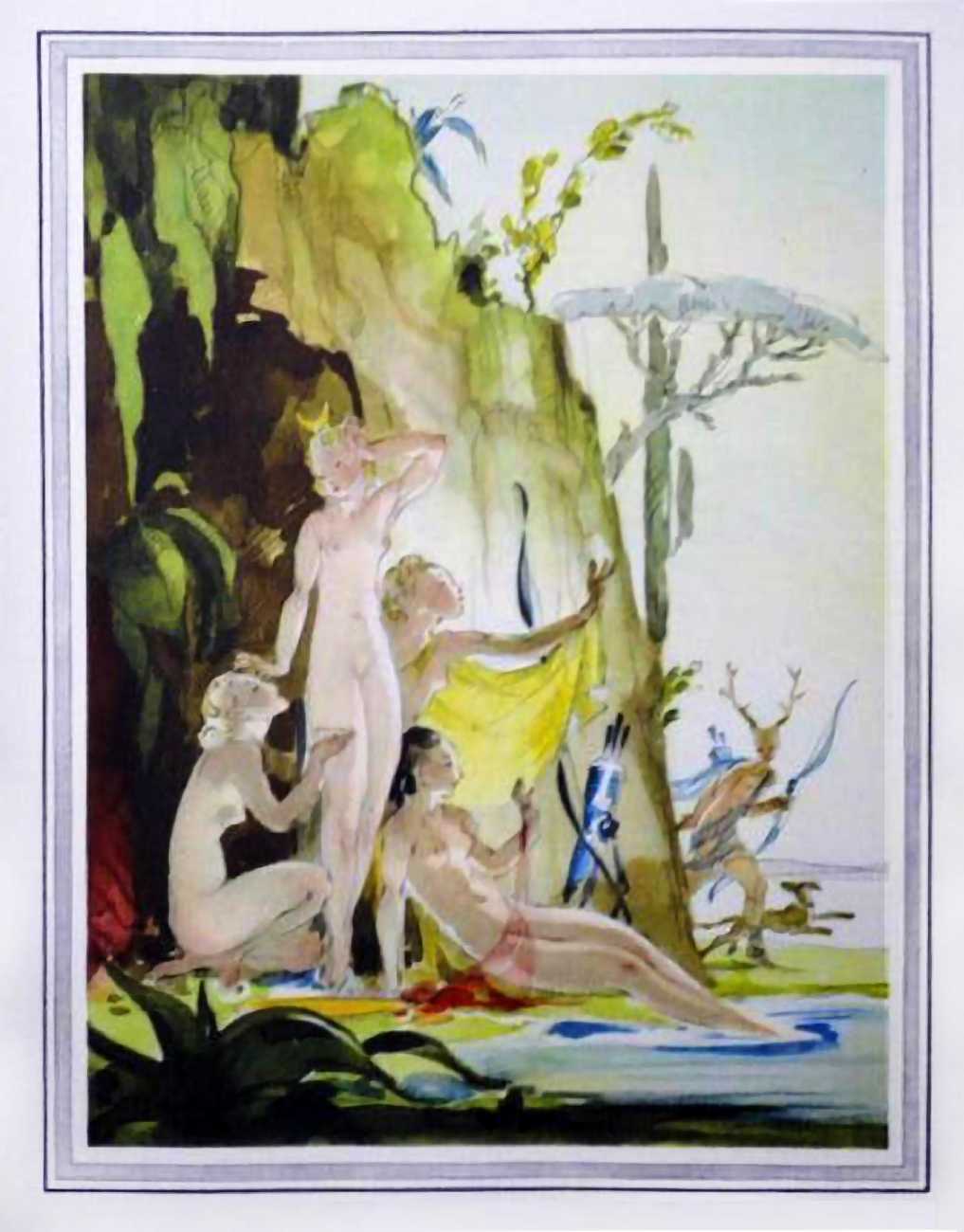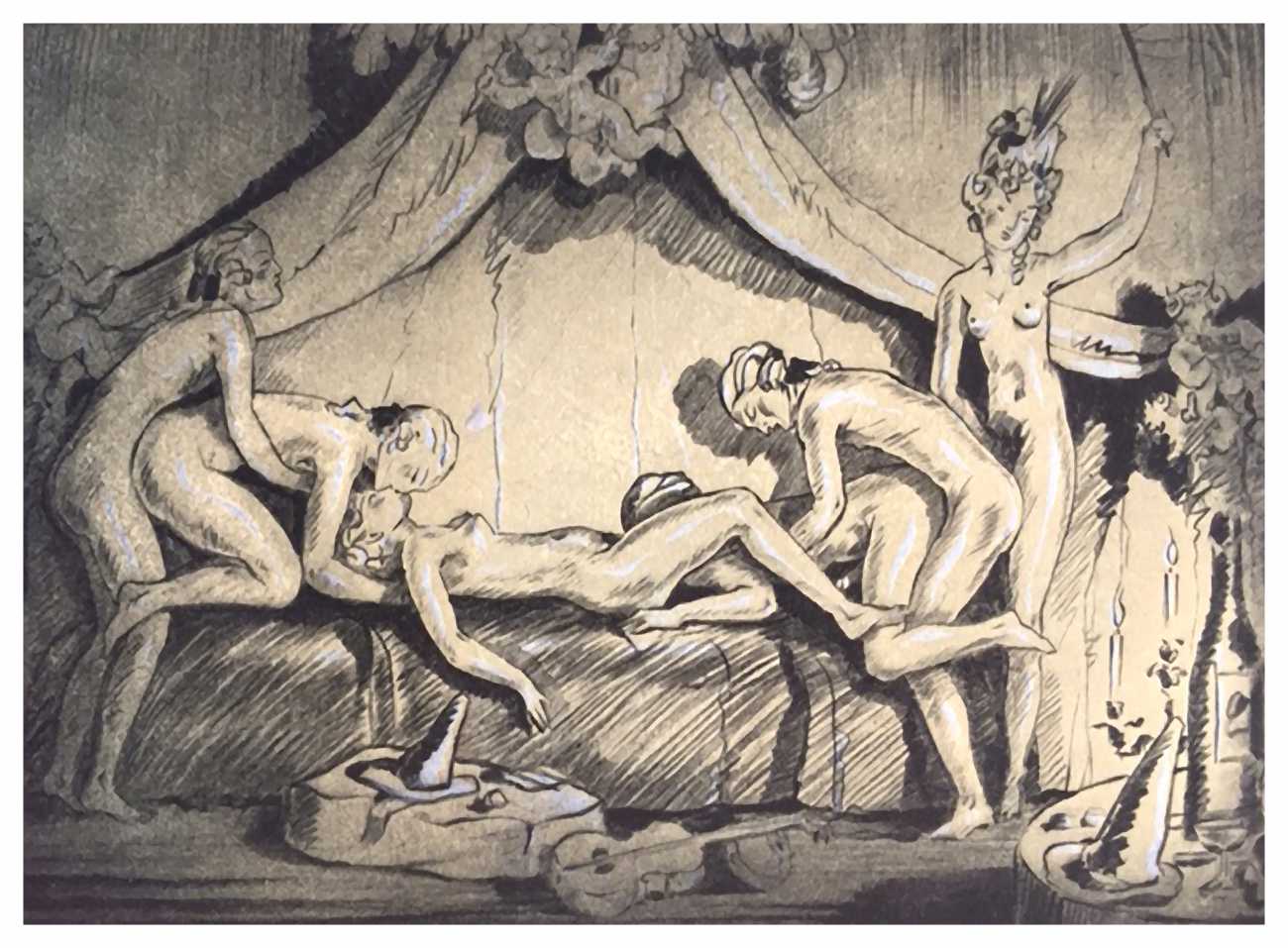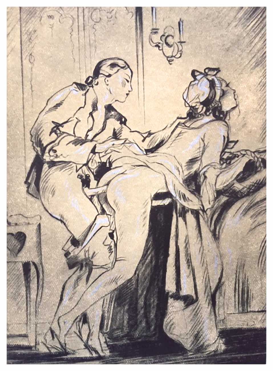 By the late 1920s, when Mercier started exploring his erotic alter ego, he had started working more in book illustration; it is probably no coincidence that it was about this time that he met Marie Guillory, who he married in 1933. They had a daughter, Sylvie, and in 1942 he illustrated a volume of folk tales for her, which was published by Éditions Marcus de Nantes.