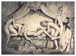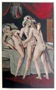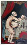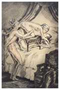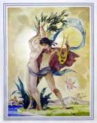 Jean-Adrien Mercier is best known as a poster designer and illustrator of children’s books; his fairly short-lived parallel career as Jean d’Angers, erotic illustrator, is less well known. He grew up in Angers in the Loire valley west of Paris (hence the nom de plume), and received his training at the École des Beaux-Arts under the direction of Charles Berjole before transferring to the École des Arts Décoratifs in Paris in 1921. After graduating in 1923 he joined the Angevin Artists Guild, created by the Angevin patois poet André Bruel; among other projects he produced a set of woodcuts for an Éditions Bibliophile Angevin publication, L’entarr’ment du Père Taugourdeau by Marc Leclerc.