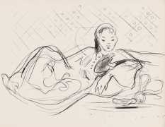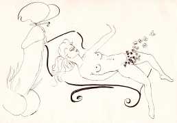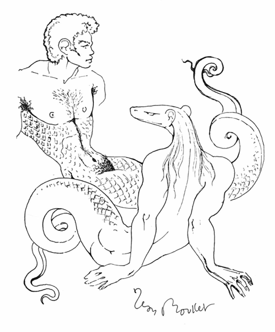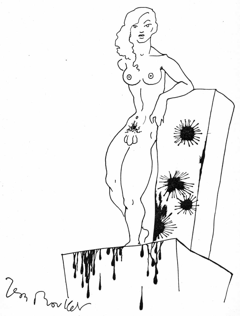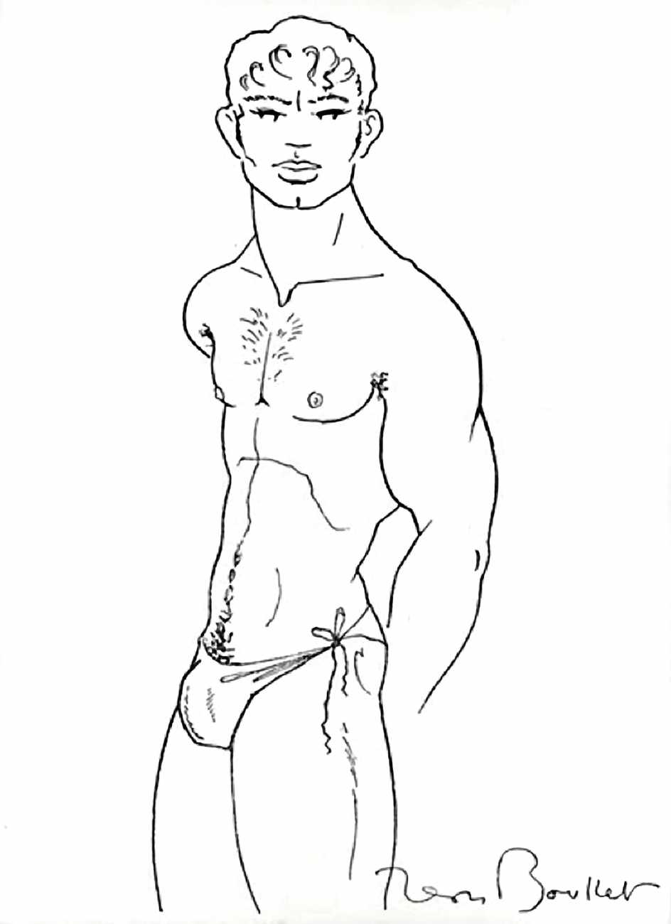 Libertarian, anticlerical, and on a personal quest for the bizarre and the forbidden, Jean Boullet was passionate about sexology, illusionism, magic, demonology and popular mythology. In December 1965 he opened a bookstore at 79 rue du Château, Le Kiosque, specialising in these themes and in collector’s comics. Riddled with debt, he closed the shop at the beginning of 1969, and in August of that year moved to Ouargla in Algeria, to run a bookshop there. On several occasions he travelled in Algeria, Morocco and Mauritania, but also went as far as Senegal and Sudan, from where he brought back many drawings.