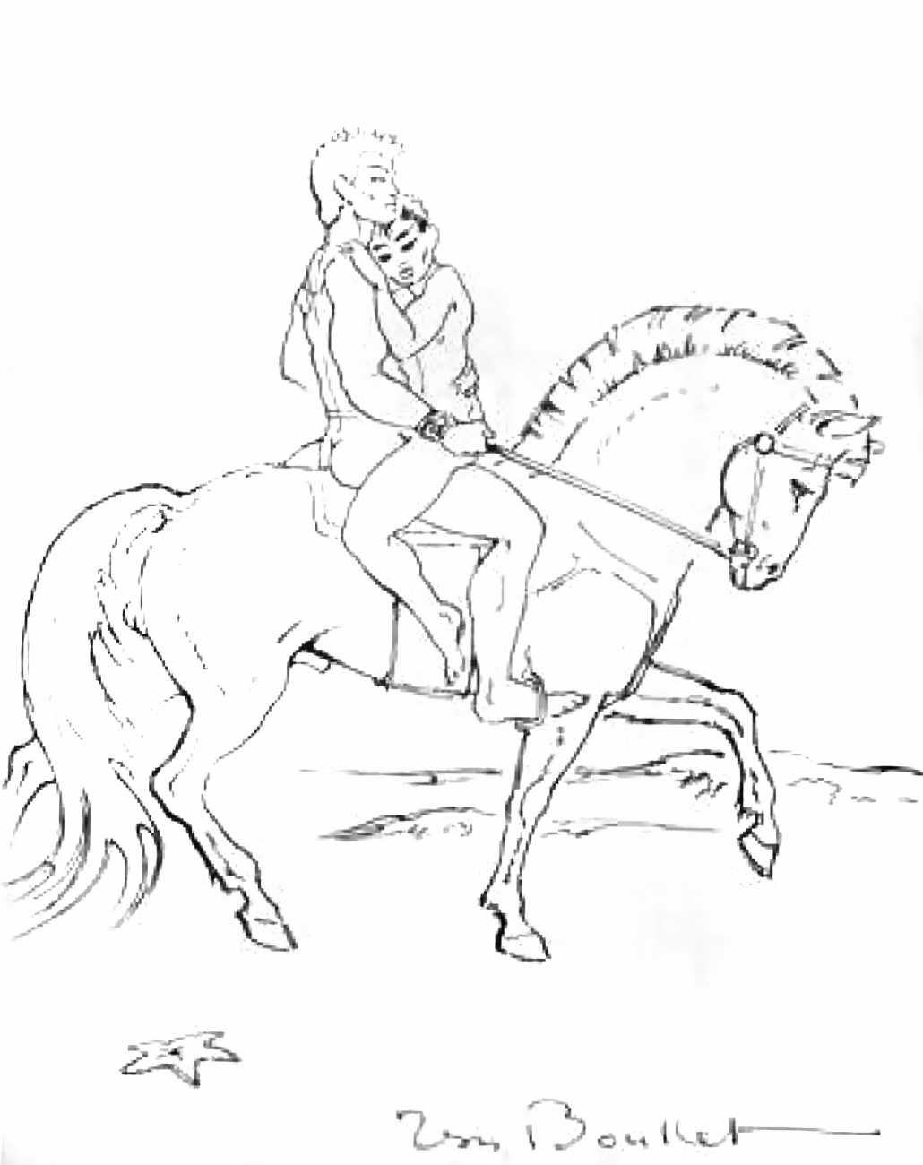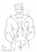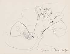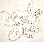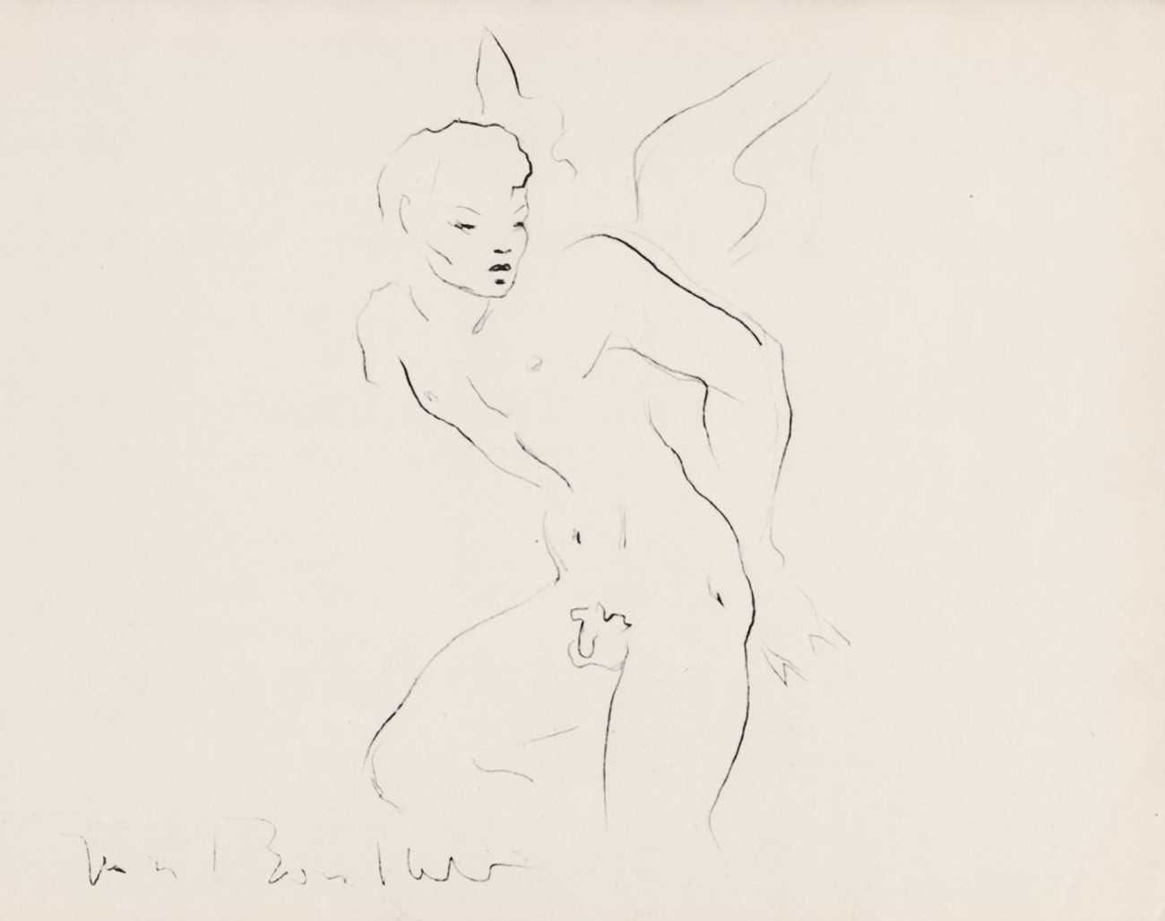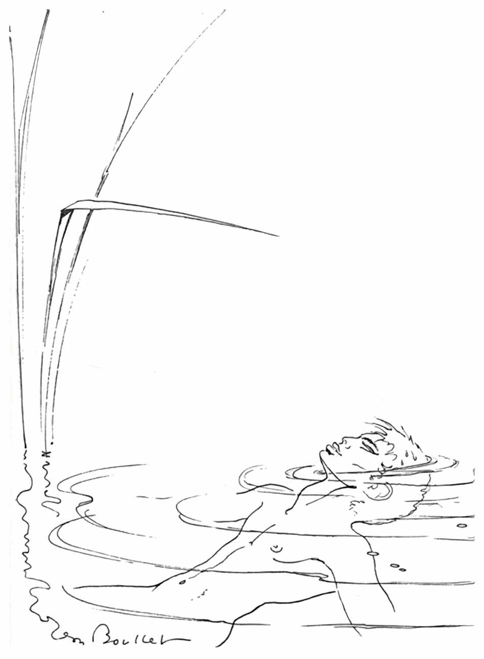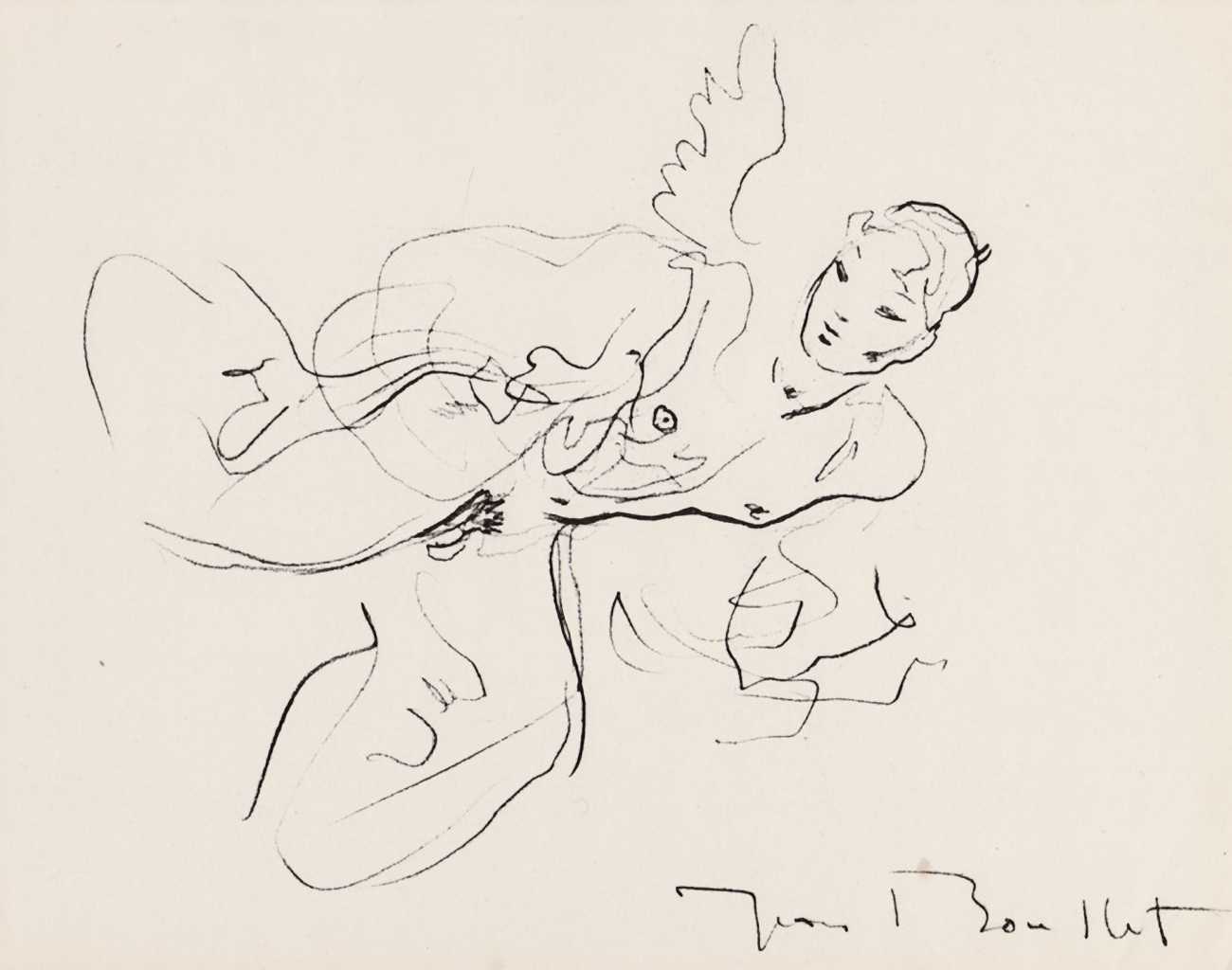 Jean Boullet began to paint in 1942, mainly portraits, and immediately after the war he became known as a designer and illustrator, living in the left bank Paris quarter of Saint-Germain-des-Prés. He illustrated texts by Edgar Allan Poe and Raymond Asso, and poems by Villon and Verlaine. In 1948 he created the sets for Boris Vian’s play J’irai cracher sur vos tombes (I Spit on your Graves), based on Vian’s novel of the same name. During the 1940s he became part of a wide artistic circle which included Édith Piaf, Michel Déon, Marie-Laure de Noailles, Jean Cocteau, Juliette Gréco, Jacques Chazot, Sacha Guitry, Marcel Carné, Roland Lesaffre, Kenneth Anger, Félix Labisse, Lise Deharme, Michel Laclos, Elliott Stein and Jacques Courtois.