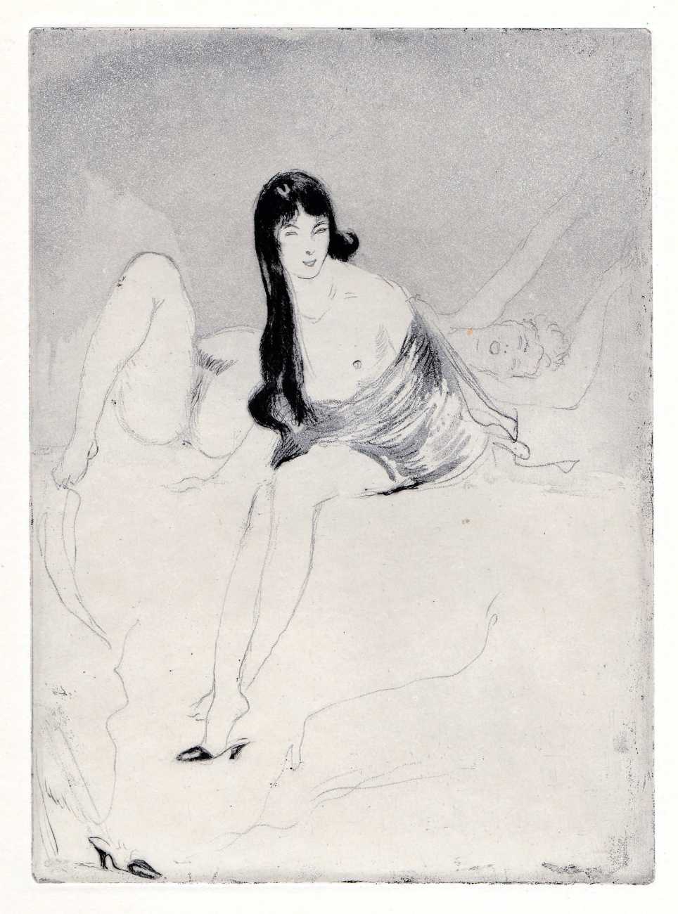 During the First World War he worked as a stretcher bearer and contributed sketches of his experiences to illustrated weeklies, then after the war he married Odette Maugendre-Villers (1884–1973), a student at the École des Beaux-Arts and a talented sculptor who often exhibited with him. In 1920 he received the gold medal at the Salon des Artistes Français, as a result of which Domergue found he was in demand from all sides, not just as a painter, advertising artist and poster designer, but also creating designs for fashion, the theatre and grand interiors. In 1922, under the aegis of the G.L Manuel Frères Gallery, he created with a team of painters, sculptors and decorators the Salon à la Mode par les Artistes, a fashinable art salon which ran for the next ten years. He designed rooms for the Salon des Decorateurs, theatre sets for productions in London and Paris, and even helped to create a men’s fashion show as well as designing dresses, hats and accessories for famous couturiers including Paul Poiret and Henry Marque.