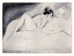 Feted by his audience in his heyday, Domergue’s style quickly went out of fashion, his enormous output of paintings of semi-nude women written off as stereotyped, rushed and repetitive. It could be said that his popularity got the better of his creativity, and that once he had found a style that sold he stopped experimenting. His favourite painting of a young woman with death looking over her shoulder was maybe a pensive hint at his own understanding of the lifespan of a popular artist.