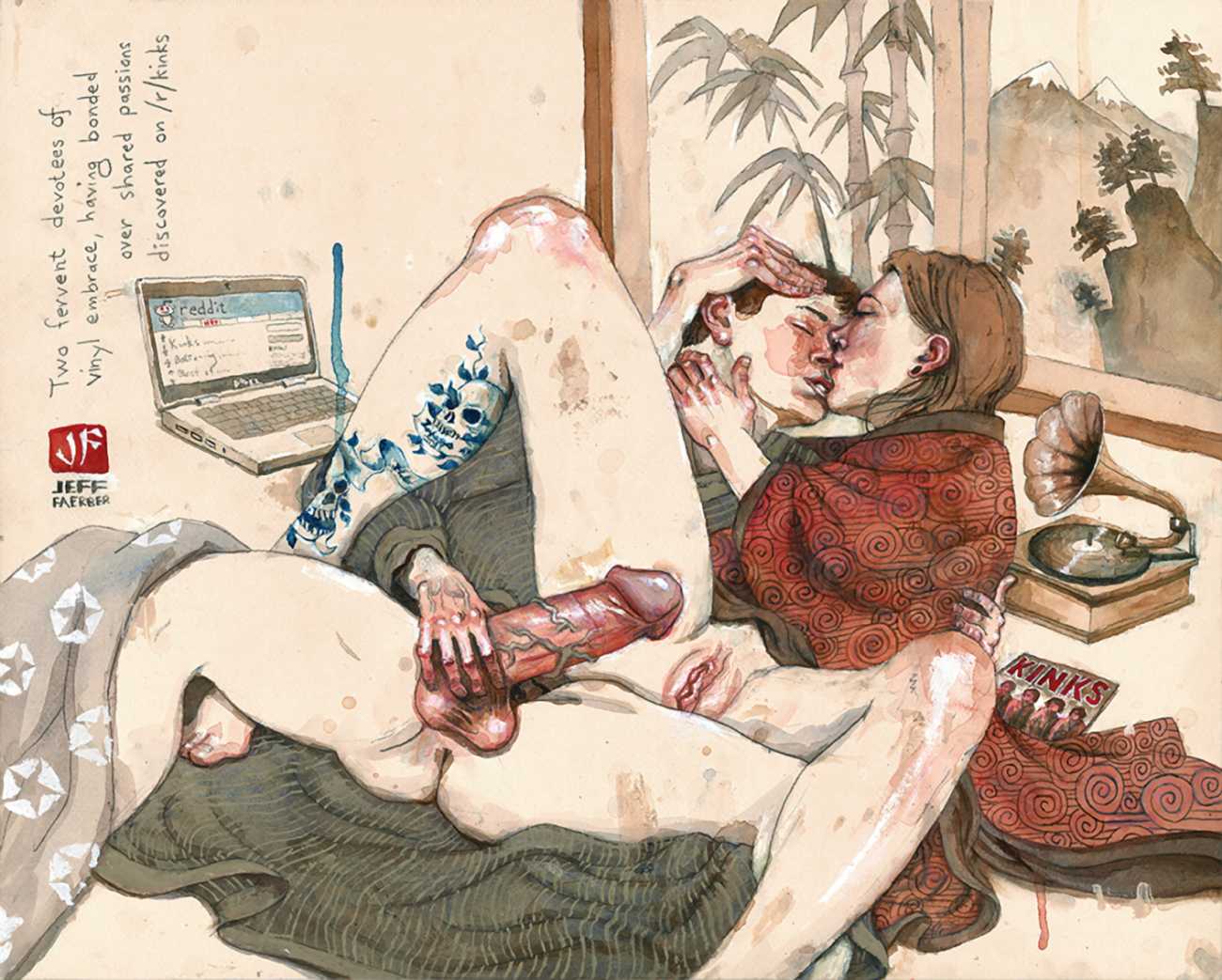 Jeff Faerber’s website, with many more examples of his work including New York cityscapes, portraits, and even the beginnings of a highly original Tarot, can be found here.