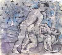 In the mid-seventies Bennàssar abandoned painting to focus on politics as an activist in the Spanish Workers Party, then at the end of the decade returned to his art, resulting in one of the most prolific stages of his career. In 1984 he exhibited at the Maeght gallery in Barcelona, a space he had a relationship with until well into the nineties, when as a mature artist he returned to his Mallorcan roots, producing paintings and sculptures reflecting the people and landscapes of his people, their history, traditions and roots. In the 2000s this included a major project on traditional island poems, Mallorca Eròtica, together with the writer Gabriel Janer i Manila.