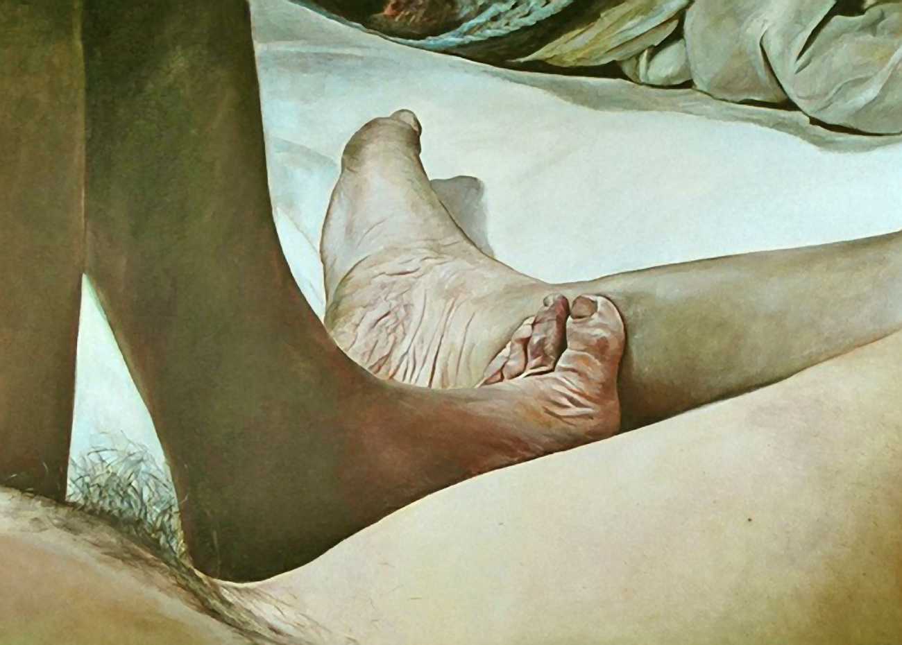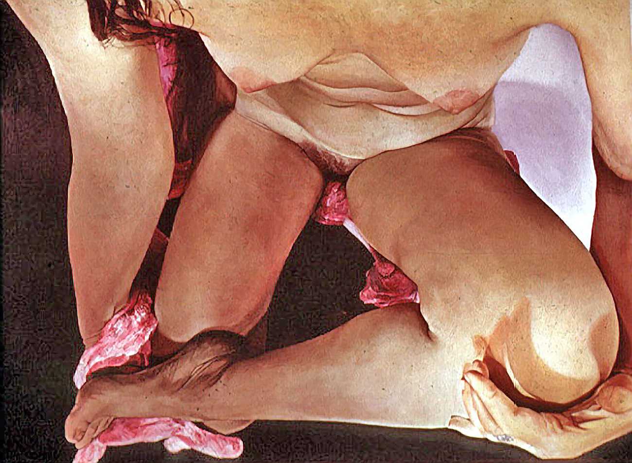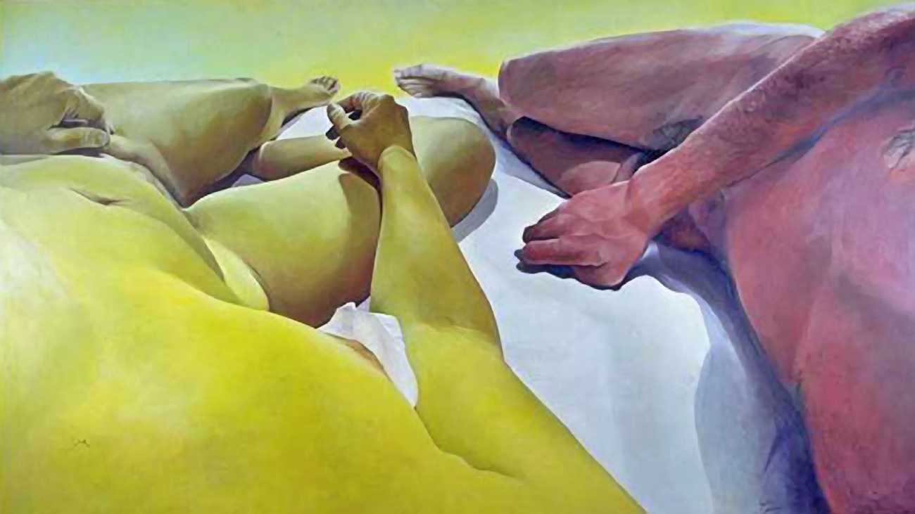 Joan Semmel, who has been painting naked bodies for more than half a century, is best known for her large hyper-realistic works which still shock many viewers. Her focus has brought her into conflict with historic messages about women’s sexual passivity and women’s value as a seductive lure. As she explains, ‘Women are essentially a chattel in so much of the history of western art, and that’s what I have always rebelled against.’