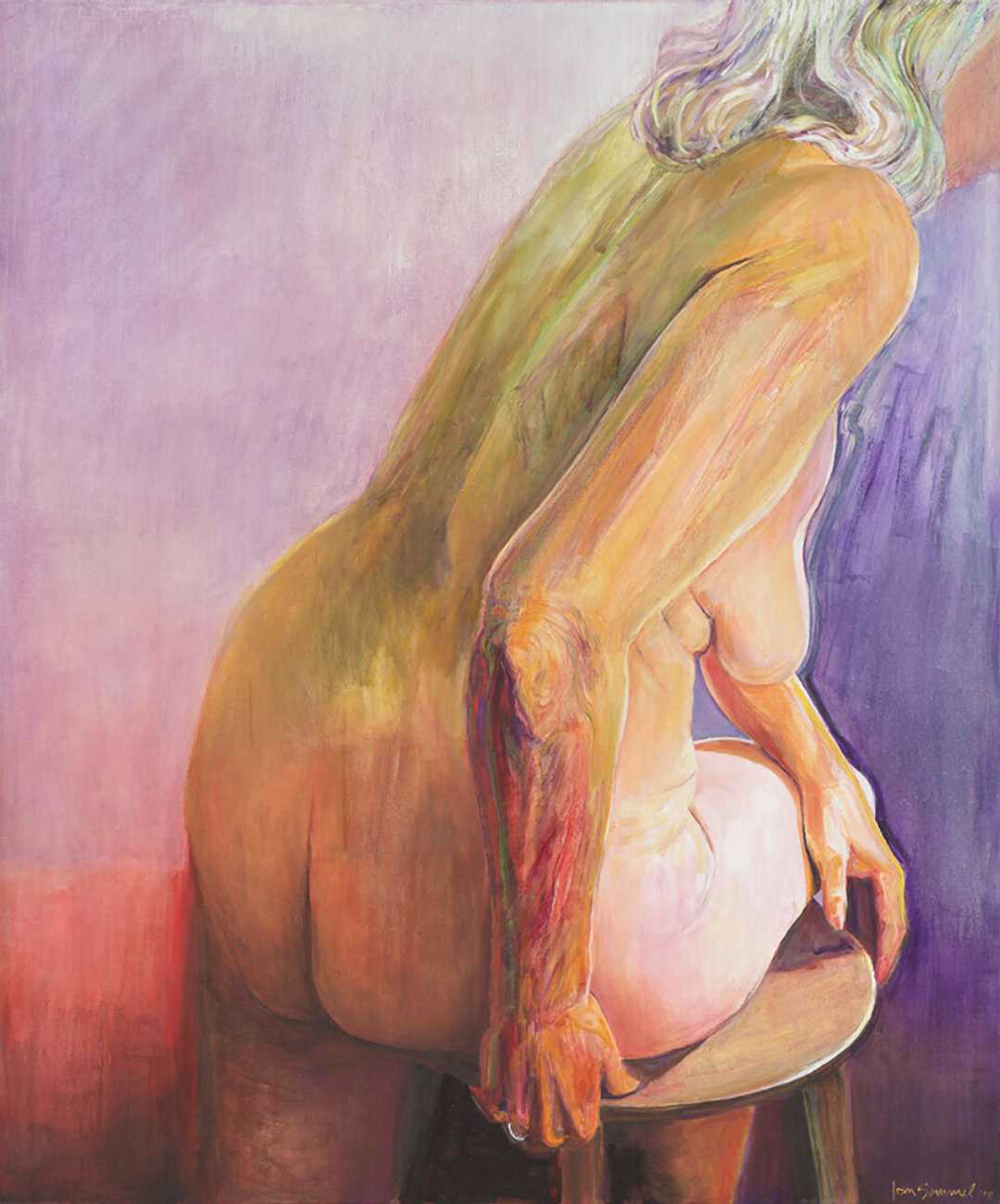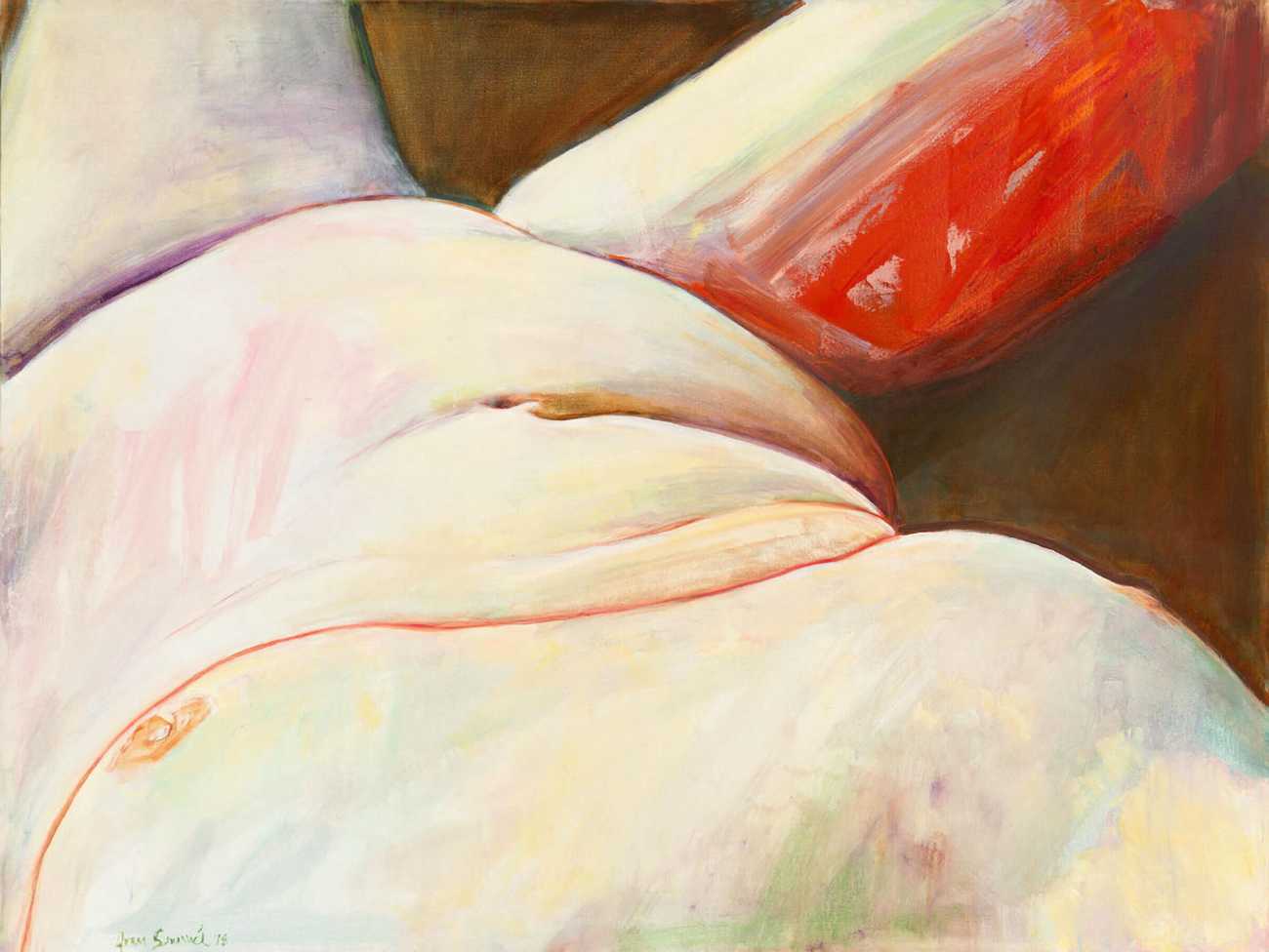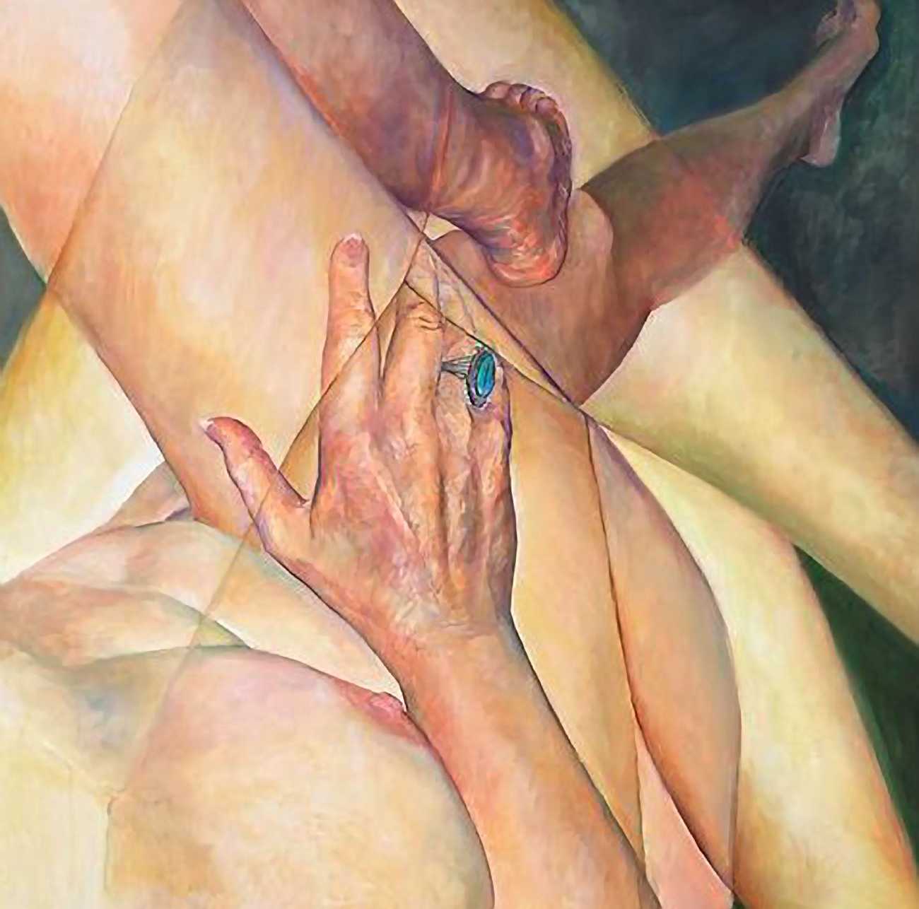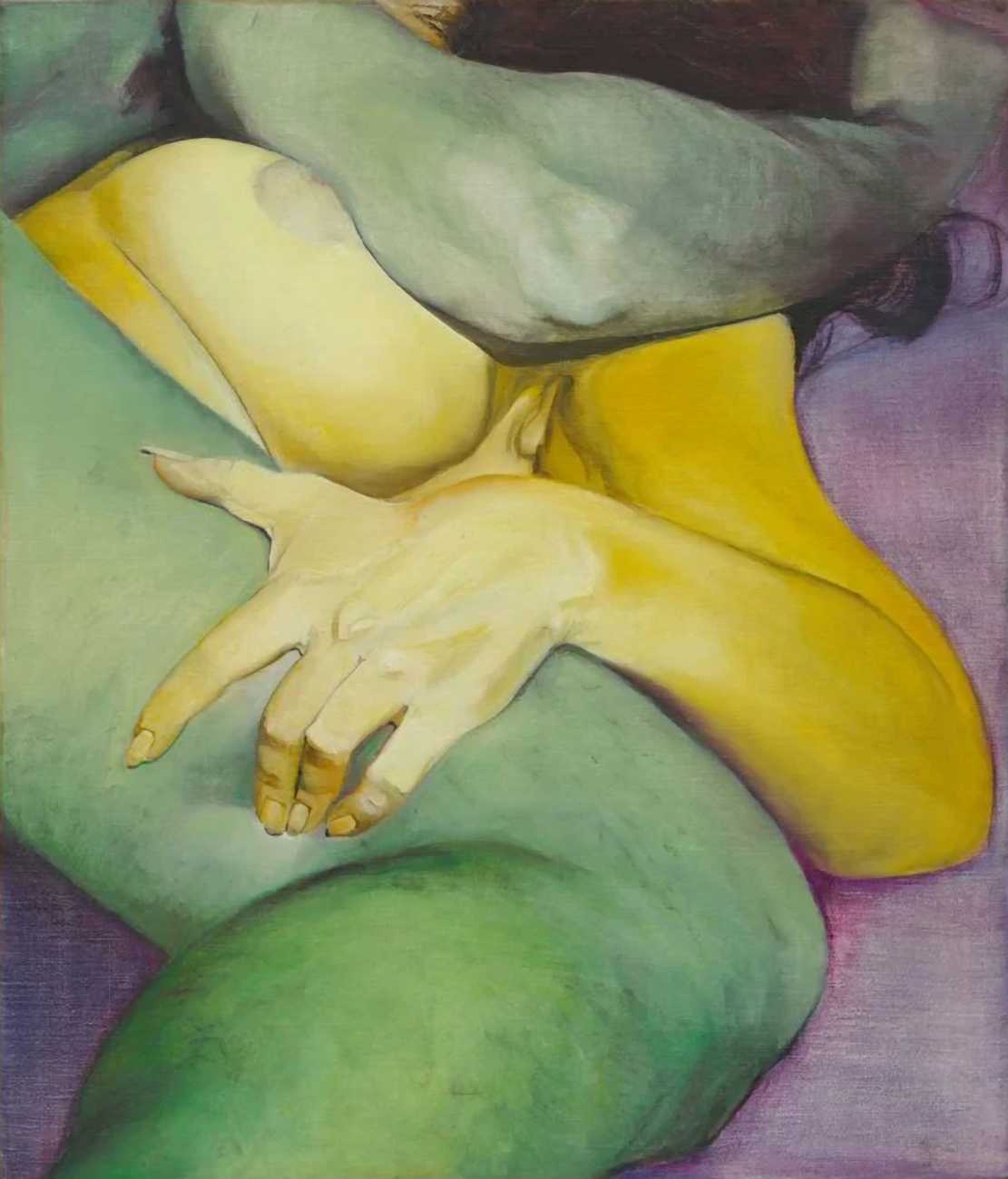 Joan Semmel, who has been painting naked bodies for more than half a century, is best known for her large hyper-realistic works which still shock many viewers. Her focus has brought her into conflict with historic messages about women’s sexual passivity and women’s value as a seductive lure. As she explains, ‘Women are essentially a chattel in so much of the history of western art, and that’s what I have always rebelled against.’