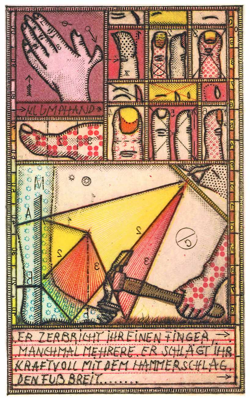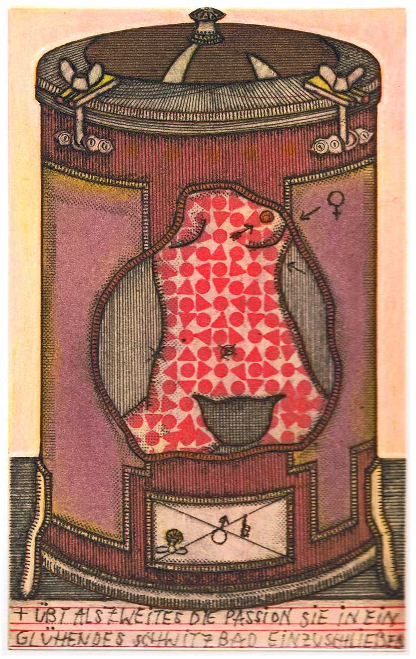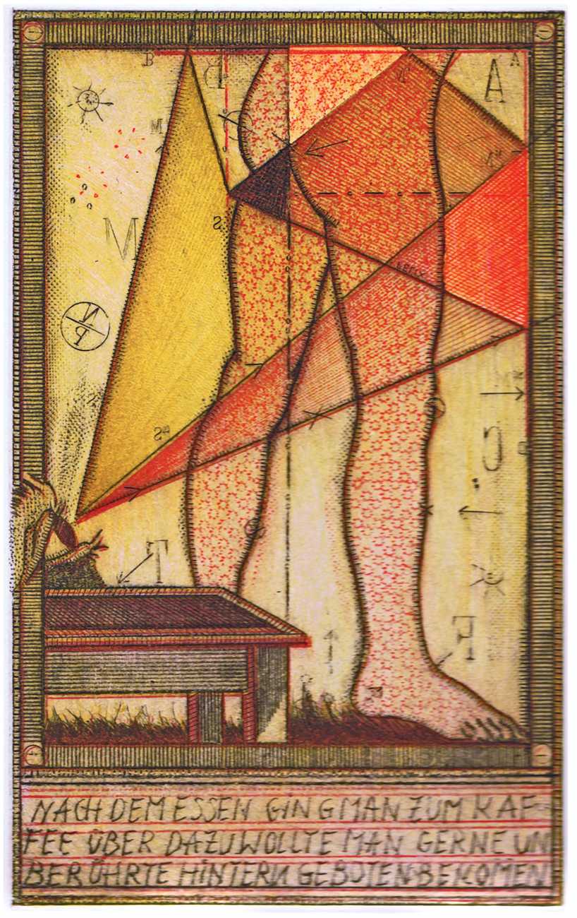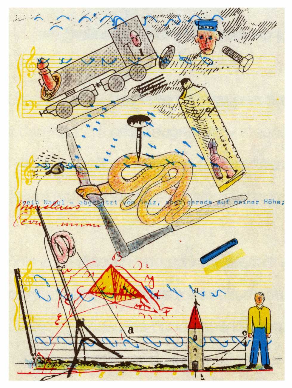 In 1974, along with the Rixdorfer Drucke workshop, he moved to Gümse on the River Elbe, and since then has divided his time between Berlin and Gümse. In the period after the move to Gümse he started one of his best-known series of prints, portraits of musicians printed on music paper. The musical theme continued with his 1981 ‘Paraphrases to Wagner’ and the 1984 ‘Jazz Museum’.