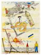 In 1989 the Rixdorfer Drucke artists dedicated an exhibition to football at the Kunstverein Elmshorner Torhaus under the title Zum Ballspiel, and in 2001 Vennekamp exhibited a solo exhibition on the subject of cars, ‘Auto’, at the Torhaus. Several recent exhibitions explore the world of technology and its influences on society, such as his ‘Info-Company’ series from 2001–3.