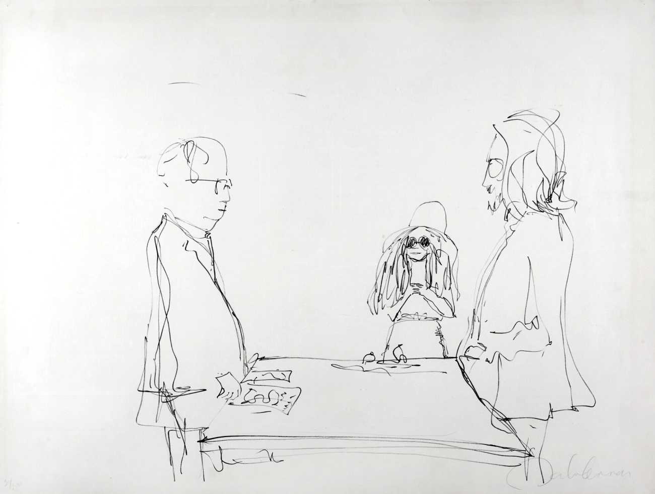 Between 1968 and 1972, Lennon and Ono collaborated on many works, including a trilogy of avant-garde albums, several more films, and his solo debut John Lennon/Plastic Ono Band with ‘Give Peace a Chance’ and ‘Imagine’. Moving to New York City in 1971, his criticism of the Vietnam War resulted in a three-year deportation attempt by the Nixon administration. Lennon and Ono separated from 1973 to 1975, during which time he had chart-topping collaborations with Elton John (‘Whatever Gets You thru the Night’) and David Bowie (‘Fame’). Following a five-year hiatus, Lennon returned to music in 1980 with the Ono collaboration ‘Double Fantasy’. He was murdered by a Beatles fan, Mark David Chapman, three weeks after the album’s release.