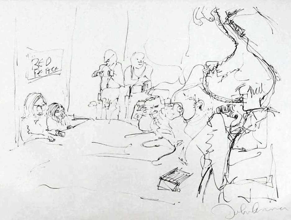 Starting with ‘All You Need Is Love’, his songs were adopted as anthems by the anti-war movement and the larger counterculture of the 1960s. In 1969 he started the Plastic Ono Band with his second wife, multimedia artist Yoko Ono, held the two-week-long anti-war demonstration Bed-ins for Peace, and left the Beatles to embark on a solo career.
