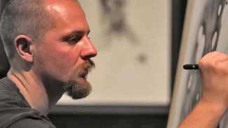 He first gained attention, some might say notoriety, for his meticulous satirical drawings of phalluses on newspaper photographs, published on his Tumblr account. In recent years Jonathan’s preferred technique has been intaglio printmaking, a traditional method of manual printing. He also works with pigmented inks, charcoal, graphite, conté and oil paints, often mixing these mediums with a unique approach to create distinctive works. Jonathan‘s academic background in theology and his passion about this topic greatly influences his creative life – his work is saturated with existential themes, deeply symbolic motifs, allegories and metaphors. His finely-crafted paintings and illustrations often feature a contemporary take on ancient esoteric, metaphysical, mythical and religious Judeo-Christian iconography, examining the perennial questions behind conventional religion.