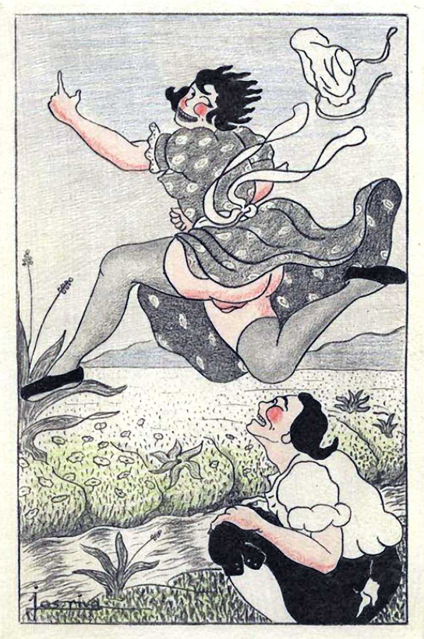 ‘Jos. Riva’ is a mystery. Only one book exists with the name as illustrator, and though the style is not dissimilar to artists like André Collot or Gaston Trilleau there is no reason for those artists to have used a pseudonym. The point after the ‘Jos.’ strongly suggests Joseph or Josef as a first name, and it has been suggested that the creator of these images is the French artist Joseph Riviere (1912–61), who was primarily a sculptor though he did make some good nude drawings; the date of publication of the Riva-illustrated volume would have made him twenty years old at the time.