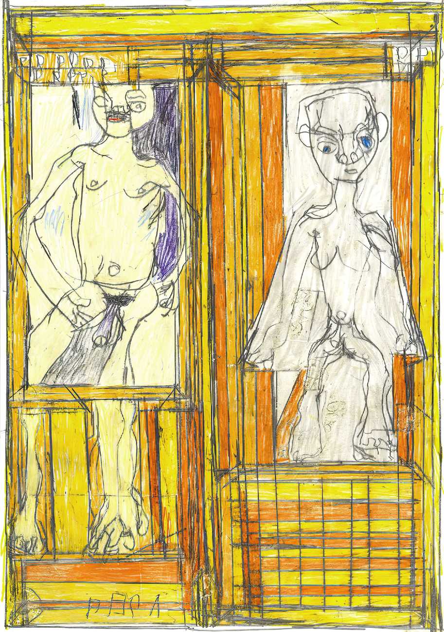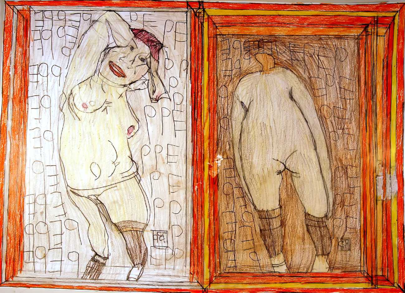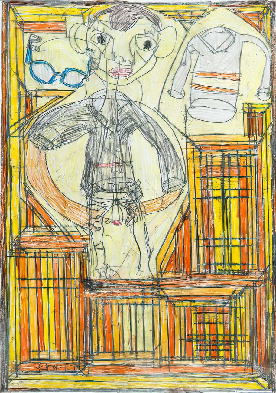 Josef’s father died in 1977, and five years later his mother moved with her two sons to live with her niece in Kirchschlag, where he attended a day clinic. In this new environment the family’s life improved radically. Josef established contact with his cousin’s sons, began to communicate in single words, and started to draw regularly. In 1985 Josef Hofer became an inpatient at Lebenshilfe Oberösterreich in Ried, where the art historian Elisabeth Telsnig noticed his love of drawing and encouraged his creativity.