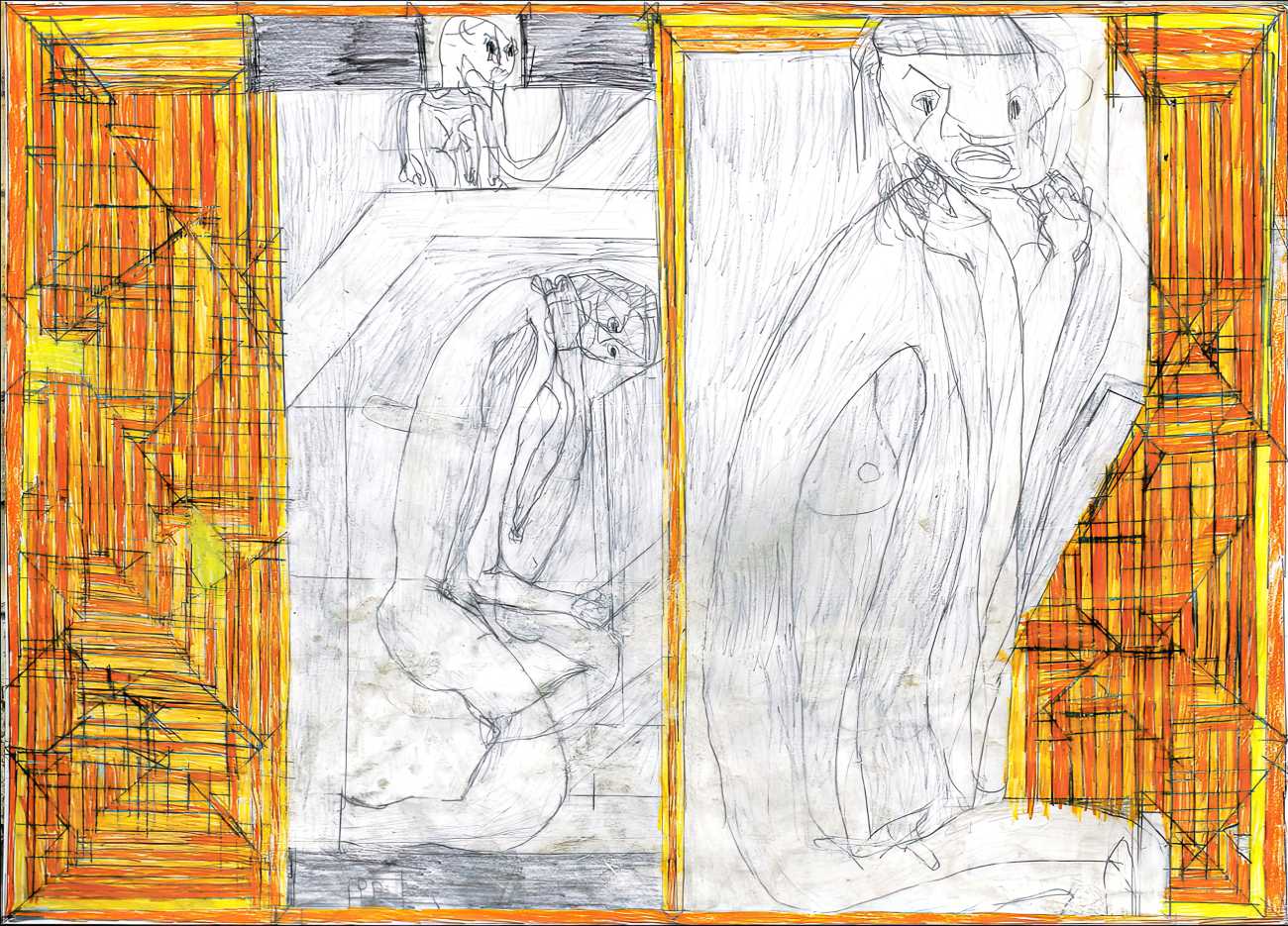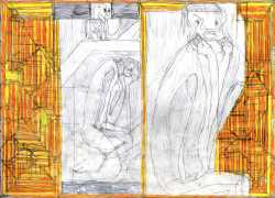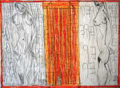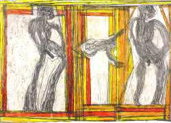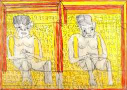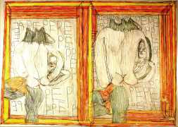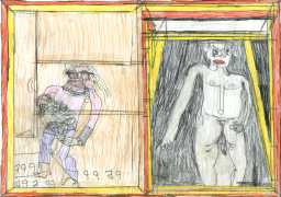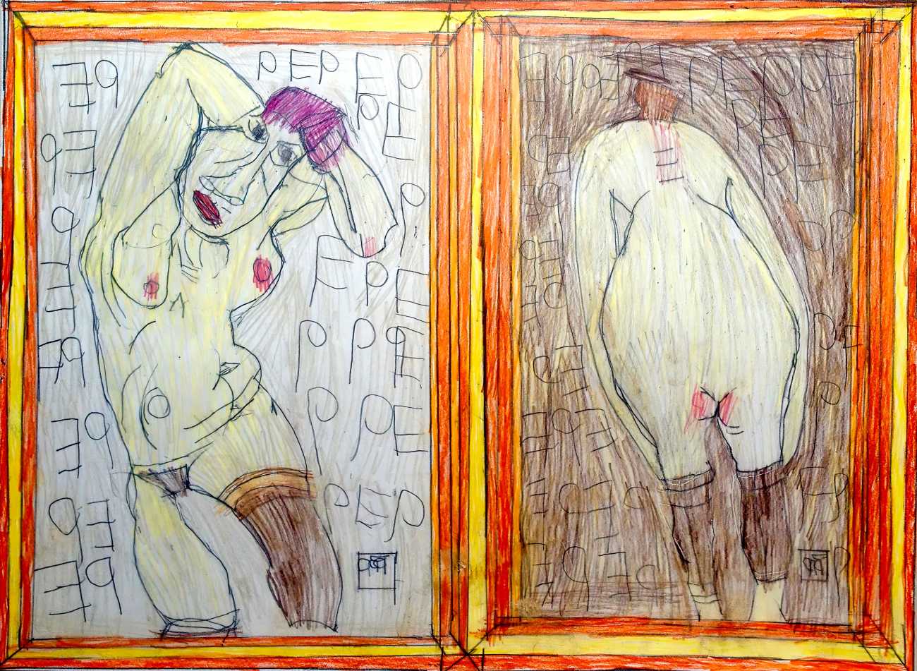 Josef’s father died in 1977, and five years later his mother moved with her two sons to live with her niece in Kirchschlag, where he attended a day clinic. In this new environment the family’s life improved radically. Josef established contact with his cousin’s sons, began to communicate in single words, and started to draw regularly. In 1985 Josef Hofer became an inpatient at Lebenshilfe Oberösterreich in Ried, where the art historian Elisabeth Telsnig noticed his love of drawing and encouraged his creativity.