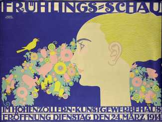 In 1897 Julius Klinger moved to Berlin, where until 1915 he worked extensively as a commercial graphic artist. Together with the printing house Hollerbaum und Schmidt, he developed a new trend in functional poster design that soon gained him international reputation. In 1912 he designed the poster for the Rund um Berlin air show in Johannisthal. In Berlin he also contributed to satirical magazines including Das Kleine Witzblatt, Lustige Blätter and Das Narrenschiff.