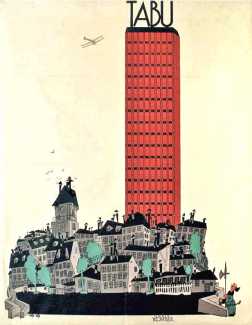 Beginning in 1918, Klinger designed a comprehensive and noted campaign promoting the Tabu company’s cigarette rolling paper. Klinger devised a wide-ranging promotional strategy, from newspaper advertisements to billboards, construction site fences and fountain panelling.