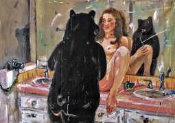 As a European in America, Katarina Janečková Walshe is fascinated with the eccentricities of what she witnesses in American life, exploring gym culture, American masculinity, and the Southwestern landscape. With the birth of her children, and residing in a new country so different from her own, she tackles the beautiful and surreal moments of day-to-day life with work that reflects these new experiences. Her visceral, fantastical works explore notions of sexuality and gender dynamics through a cast of self-assured naked women going about their days in sun-baked landscapes and domestic interiors. And then there are the ever-present bears.