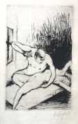 After the war she travelled extensively, especially in Greece and Italy, and an exhibition of her Greek portraits and landscapes was held in at London’s Ansdell Gallery in 1970. Drawings by Wilczynski appeared in several books including Daphnis and Chloe, Homage to Greece, and The Love Songs of Sappho, though the 1922 etchings for Kyrie Eleison are her only truly erotic work.