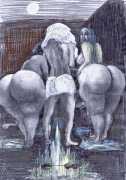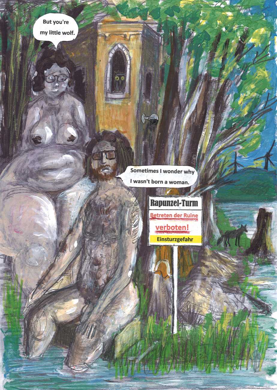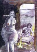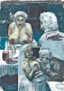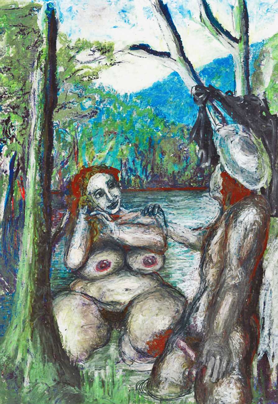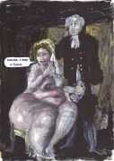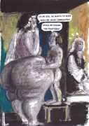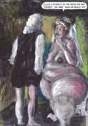 A majority of my images belong to graphic novels. Here too I am a blatant outsider, because my stories – mostly on historical subjects – follow the old tradition of picture stories. Thematically I process classic material such as Boccaccio’s Decameron, stories from the Bible, Lady Chatterley’s Lover, and the life of the philosopher Rousseau, but I have also created my own narratives such as the abbey on the banks of the Meuse or the Pygmalion project. Over time I have created well over 1,200 illustrations, and will continue to add new ones as long as I don’t find myself in a deep, sad hole again or terrible political events throw me off course.