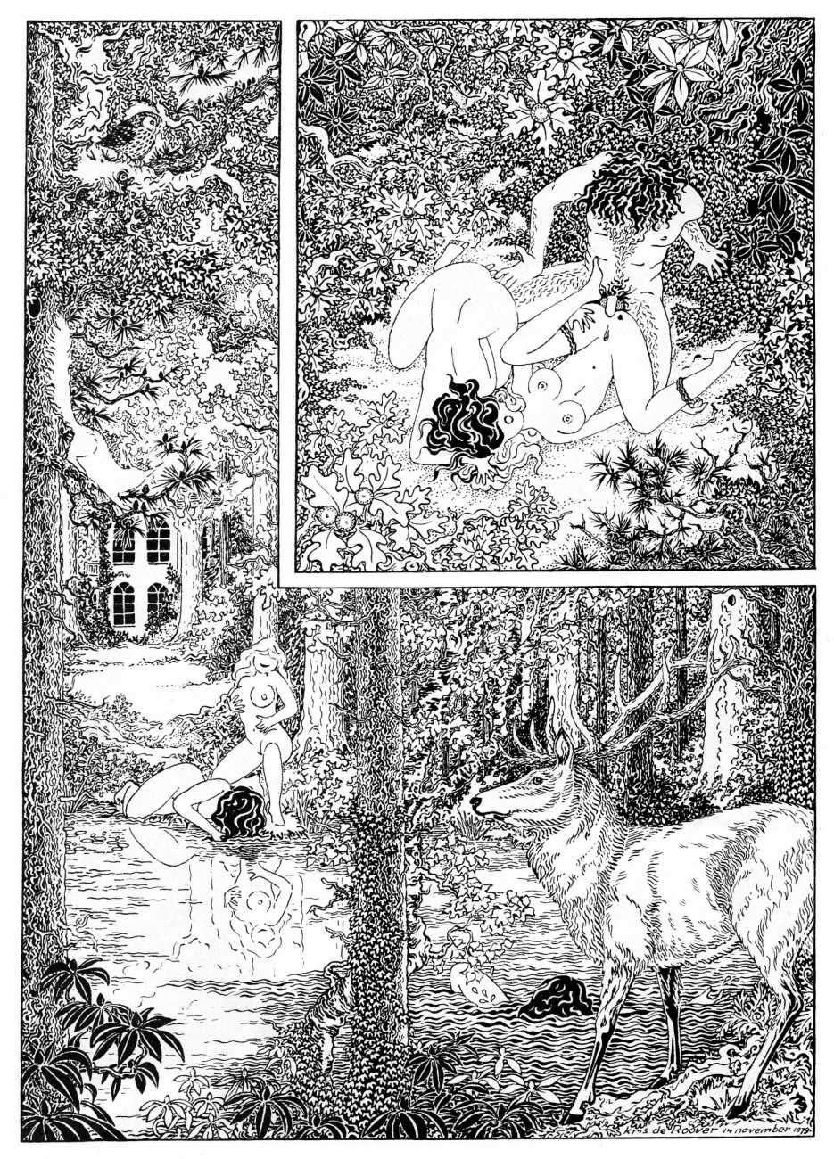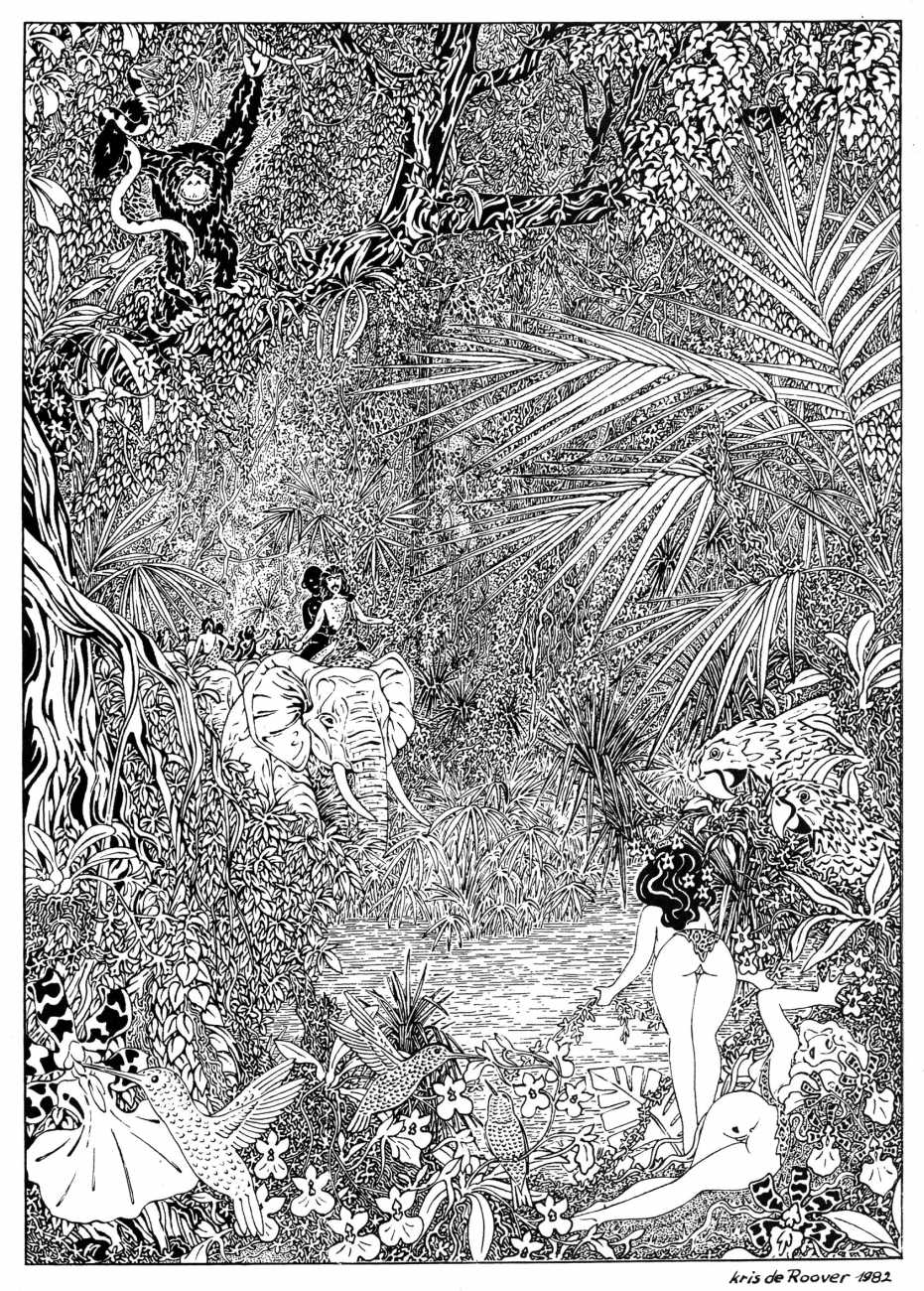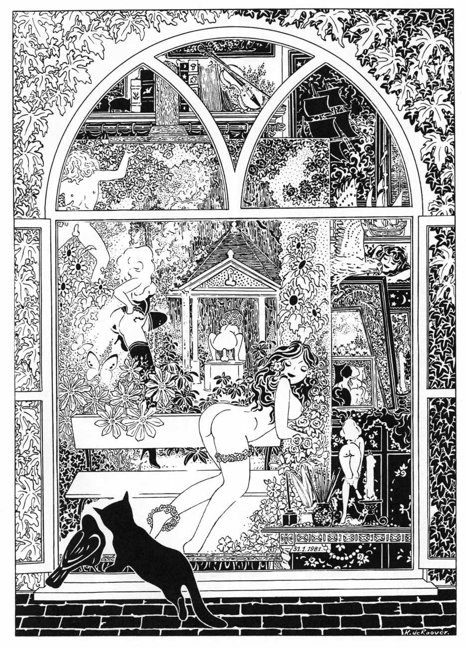 Kris de Roover, who lives and works in Zeeland, the westernmost and least populous province of the Netherlands, is one of those illustrators who have produced very little work, but all of it imaginative and of a high quality. He studied art and architecture in Antwerp, spent some time as a goat farmer, then settled down as an architect with a sideline in illustration, with a preference for nature and erotica (and ideally a combination of the two).