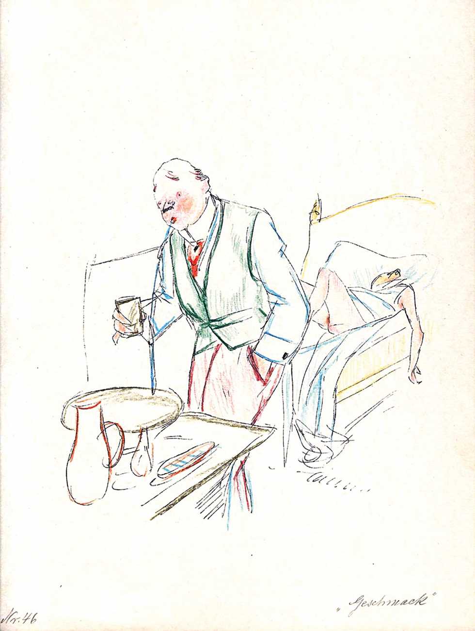 Wladislaus Boris (he preferred the diminutive László) grew up in Budapest, where he studied art before spending time in Paris. In 1920 he moved to Munich, where he created illustrations for the satirical weekly magazine Simplicissimus, and made etchings for the Theatre volume, written by critic Peter Panter, in the Leipzig-published Schatten (Shadows) series.