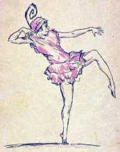 Leo Impekoven’s design skills went beyond theatre, however; he was also a talented graphic designer. Among his commissions were a series of army recruitment posters in 1914, ceramics designs, and lithographs. Though he never had children of his own, he was particularly fond of his niece Luise, daughter of his playwright brother Toni. Luise (1904–2002), better known as ‘Niddy’, became a famous dancer and actress in the 1920s, and Leo produced a portfolio of drawings of her which was published by the Berlin publisher Reiss.