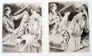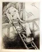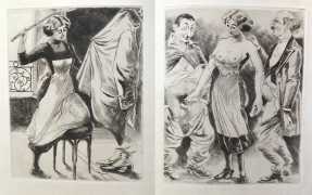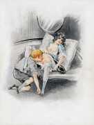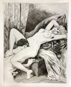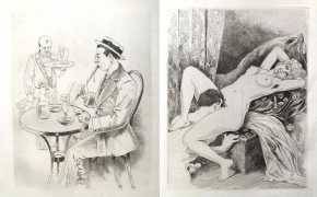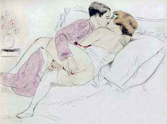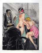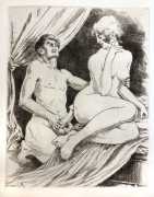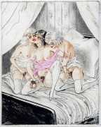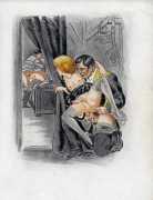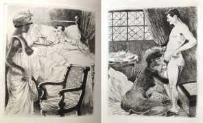 We know that in the late 1920s and early 30s he was friends with the author and publisher Fernand Mitton, whose publishing house, Art de l’Intermédiaire du Bibliophile, published three books illustrated by Courbouleix. As well as Courbouleix, Mitton also commissioned fashion illustrator Pierre Brissaud (1885–1964) for Henri Murger’s Scènes de la vie de Bohème, and Edward Chimot for an edition of Louys’ Aphrodite. After the demise of Mitton’s publishing venture in 1932 Léon Courbouleix went on to publish a number of erotic and semi-erotic titles on a subscription basis.