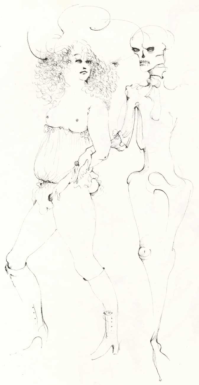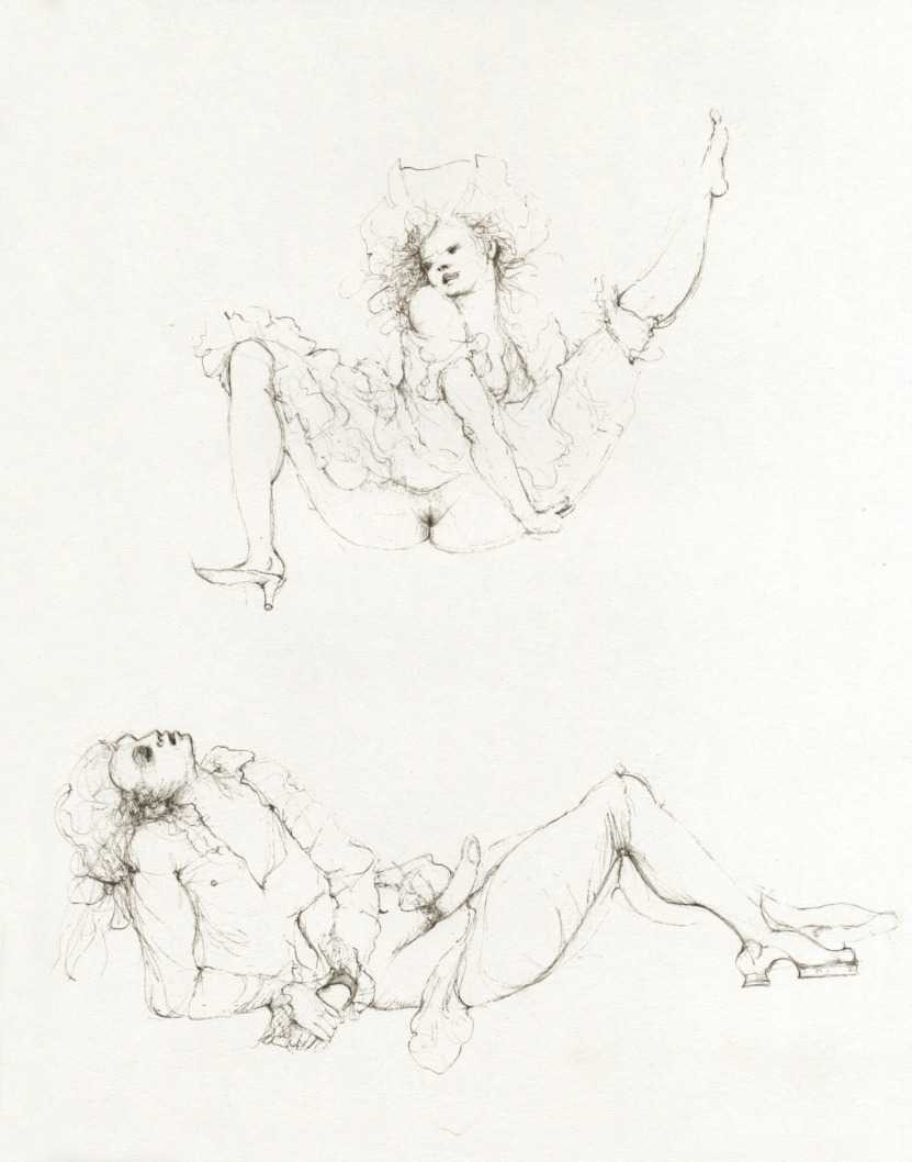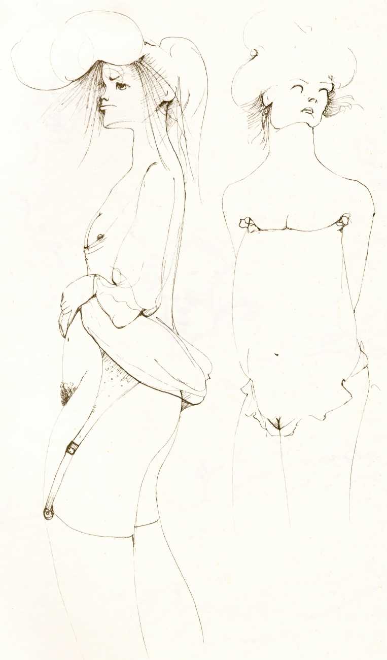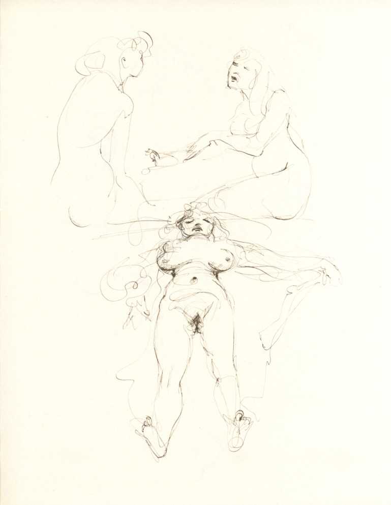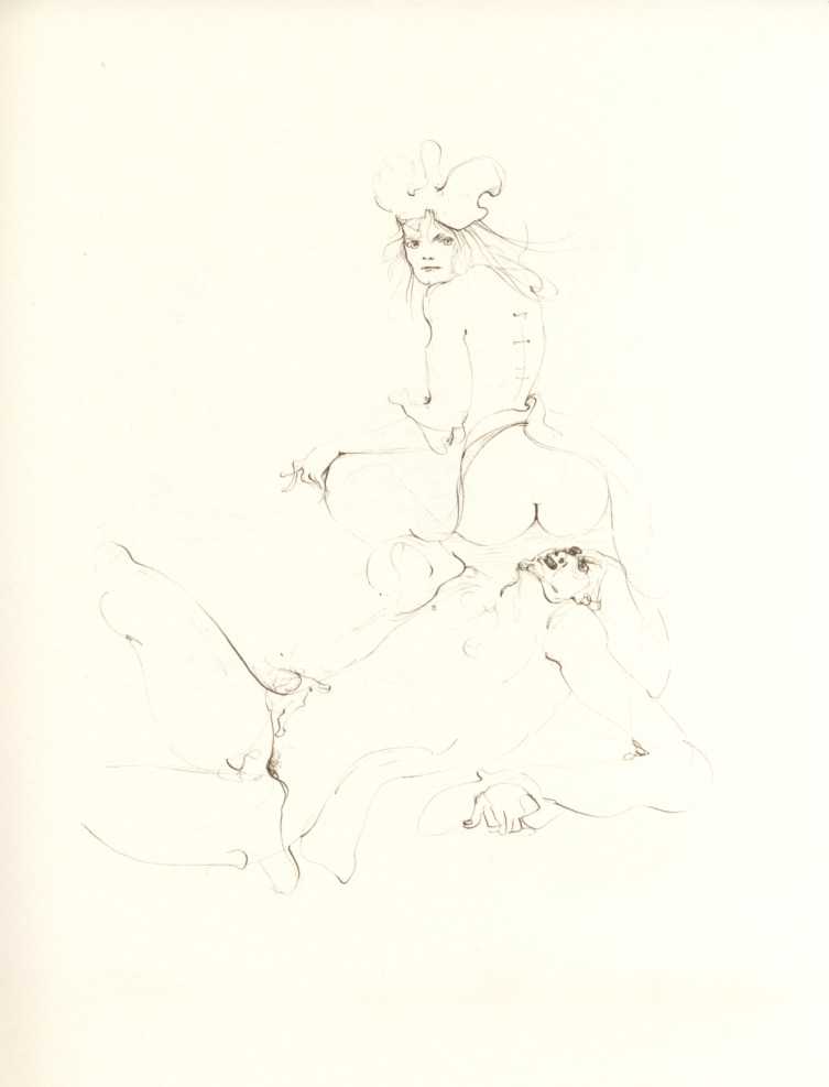 And she was a prolific and highly creative illustrator, inspired by a wide range of texts, nearly all chosen by her, which in one way or another spoke to her at a profoundly emotional and intellectual level. It is her book and portfolio illustrations we concentrate on here, starting with her 1945 illustrations for the Marquis de Sade’s Juliette, with its telling subtitle ‘les prospérités du vice’ – ‘vice amply rewarded’.