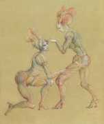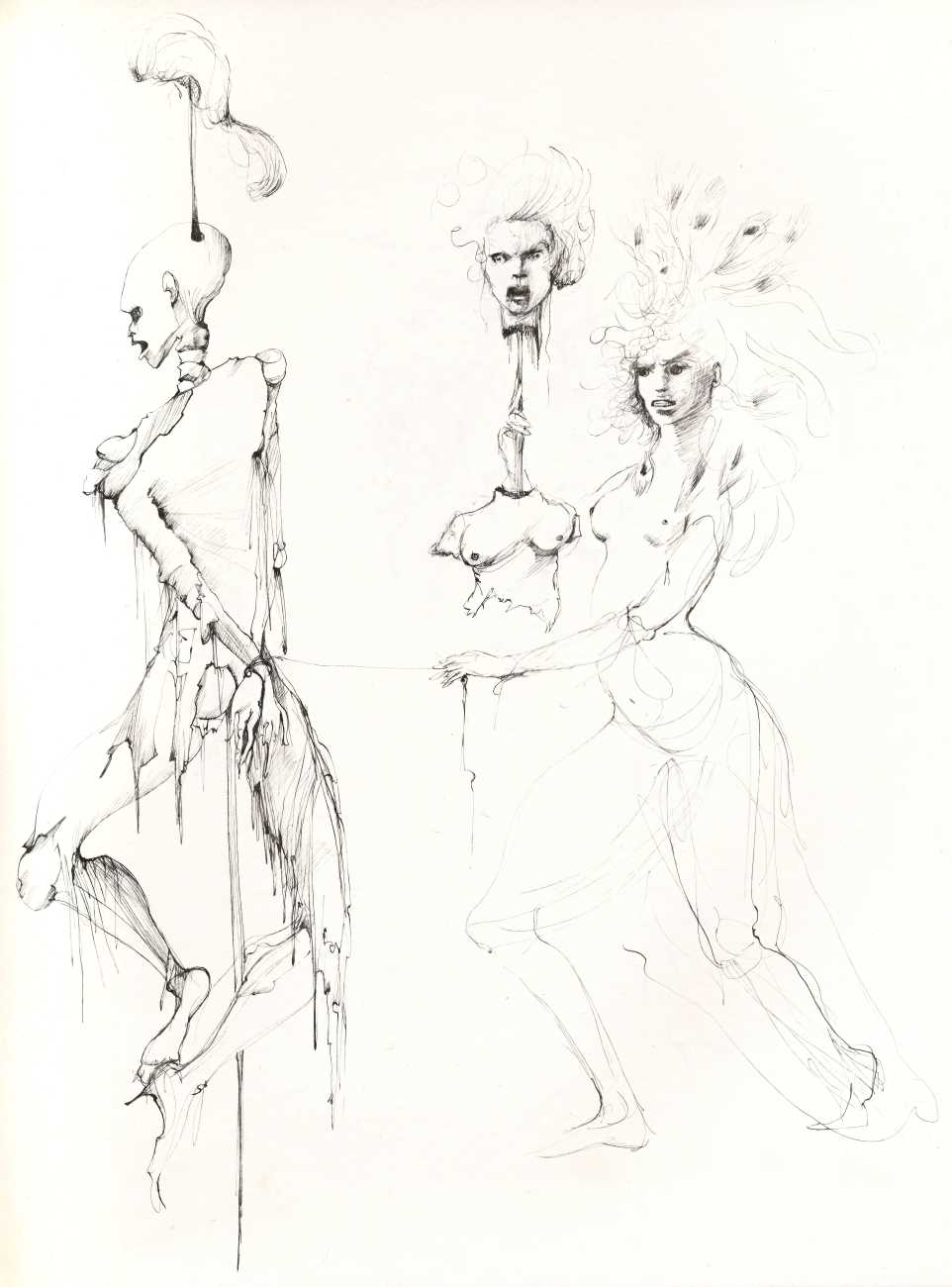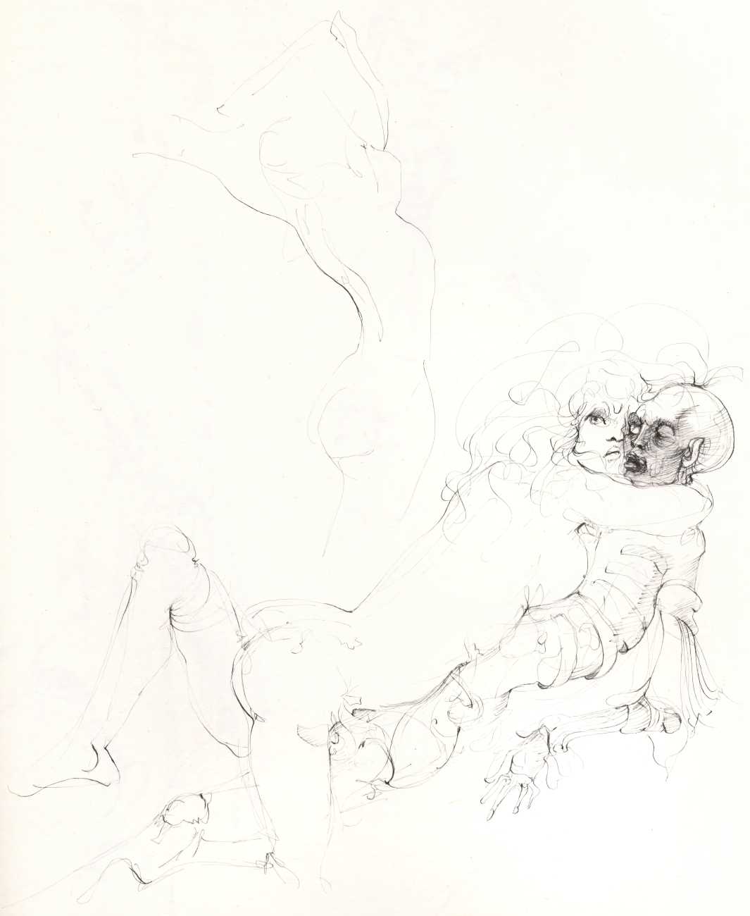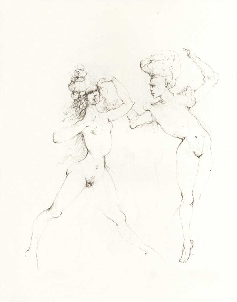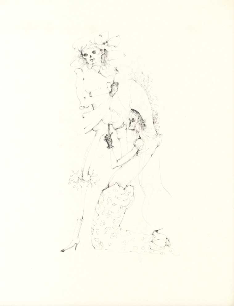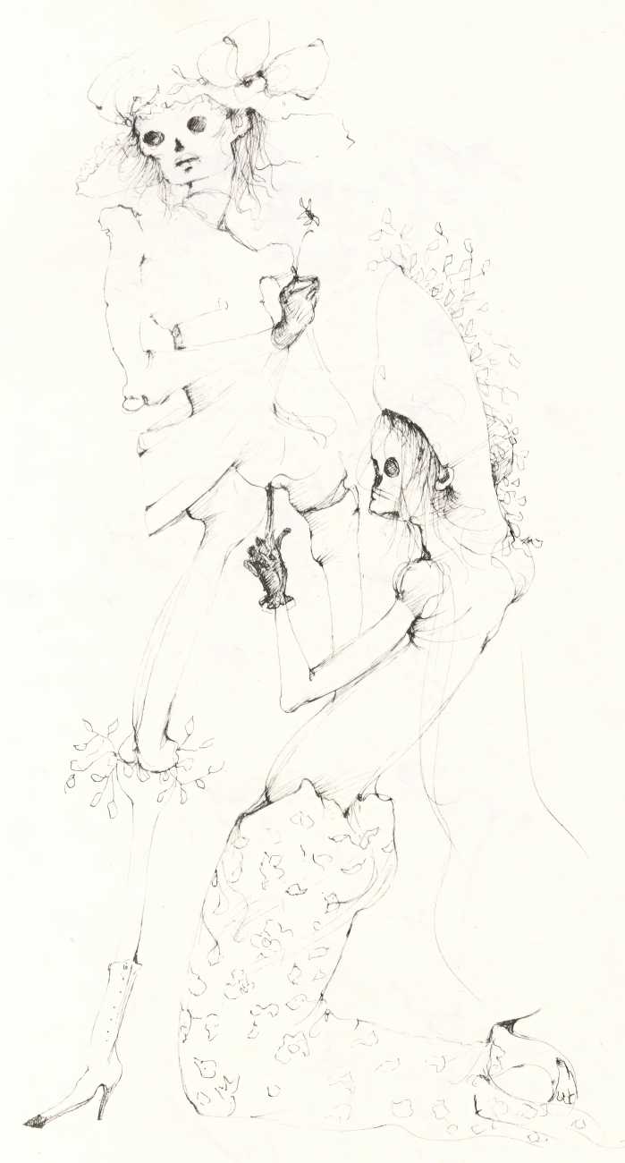 And she was a prolific and highly creative illustrator, inspired by a wide range of texts, nearly all chosen by her, which in one way or another spoke to her at a profoundly emotional and intellectual level. It is her book and portfolio illustrations we concentrate on here, starting with her 1945 illustrations for the Marquis de Sade’s Juliette, with its telling subtitle ‘les prospérités du vice’ – ‘vice amply rewarded’.