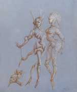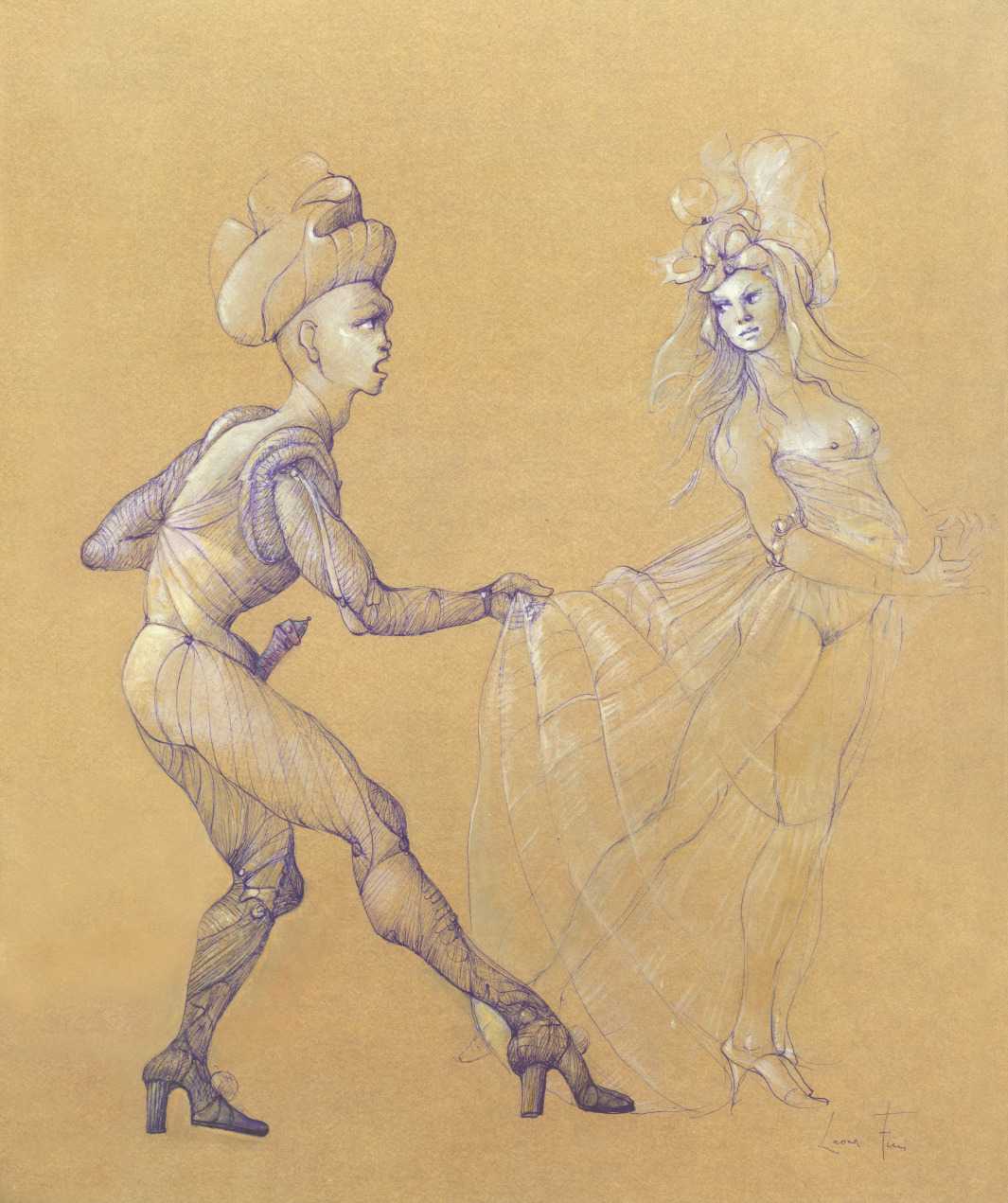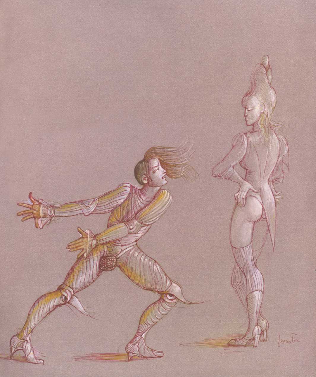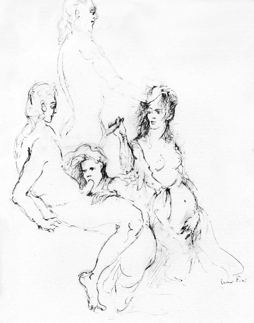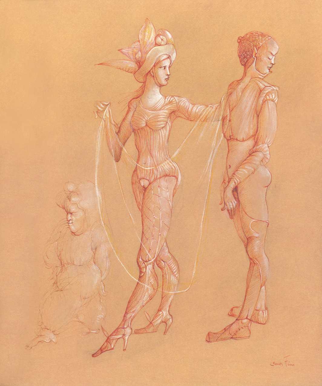 Leonor had clear and strongly-held ideas, in many ways far ahead of her time, about how women and men could coexist equally and supportively. ‘It is obvious that women have been mistreated by men for so long,’ she wrote. ‘They have always had to submit to men. It is no wonder that they are going on the offensive now. But I am not a feminist, and hate being claimed as a feminist. I like men who are intelligent, sensitive, have real understanding, men who are aware of their feminine side. I especially like homosexual men and androgynous men. I like to think of myself as androgynous.’ It is this androgyny which has confused many of Leonor Fini’s admirers, who have confused it with bisexuality. There is no doubt that Leonor loved women deeply – she was close to many of her female artistic contemporaries – but she was also passionately attracted to the right sort of men.