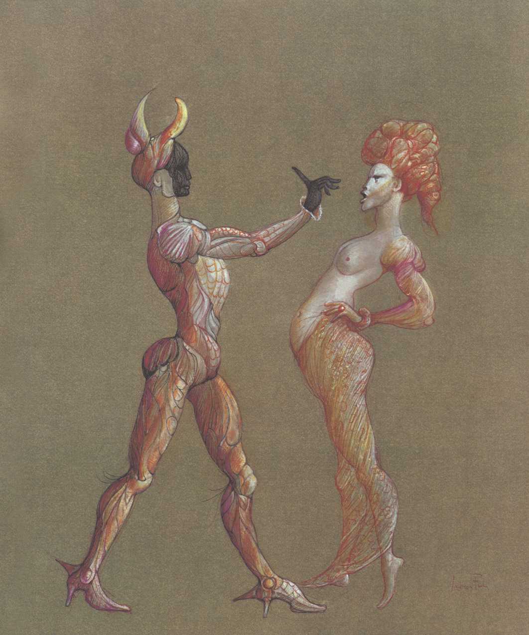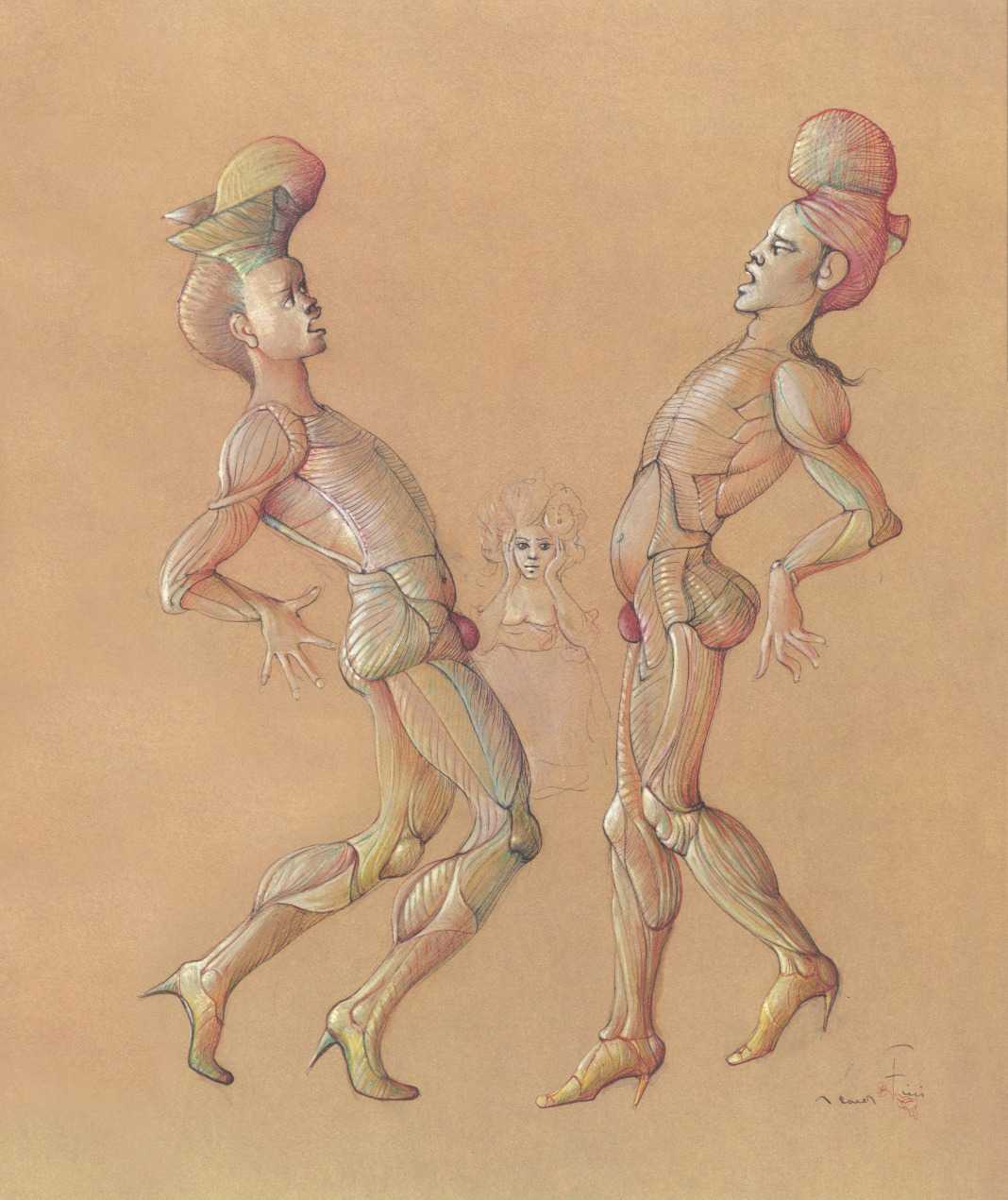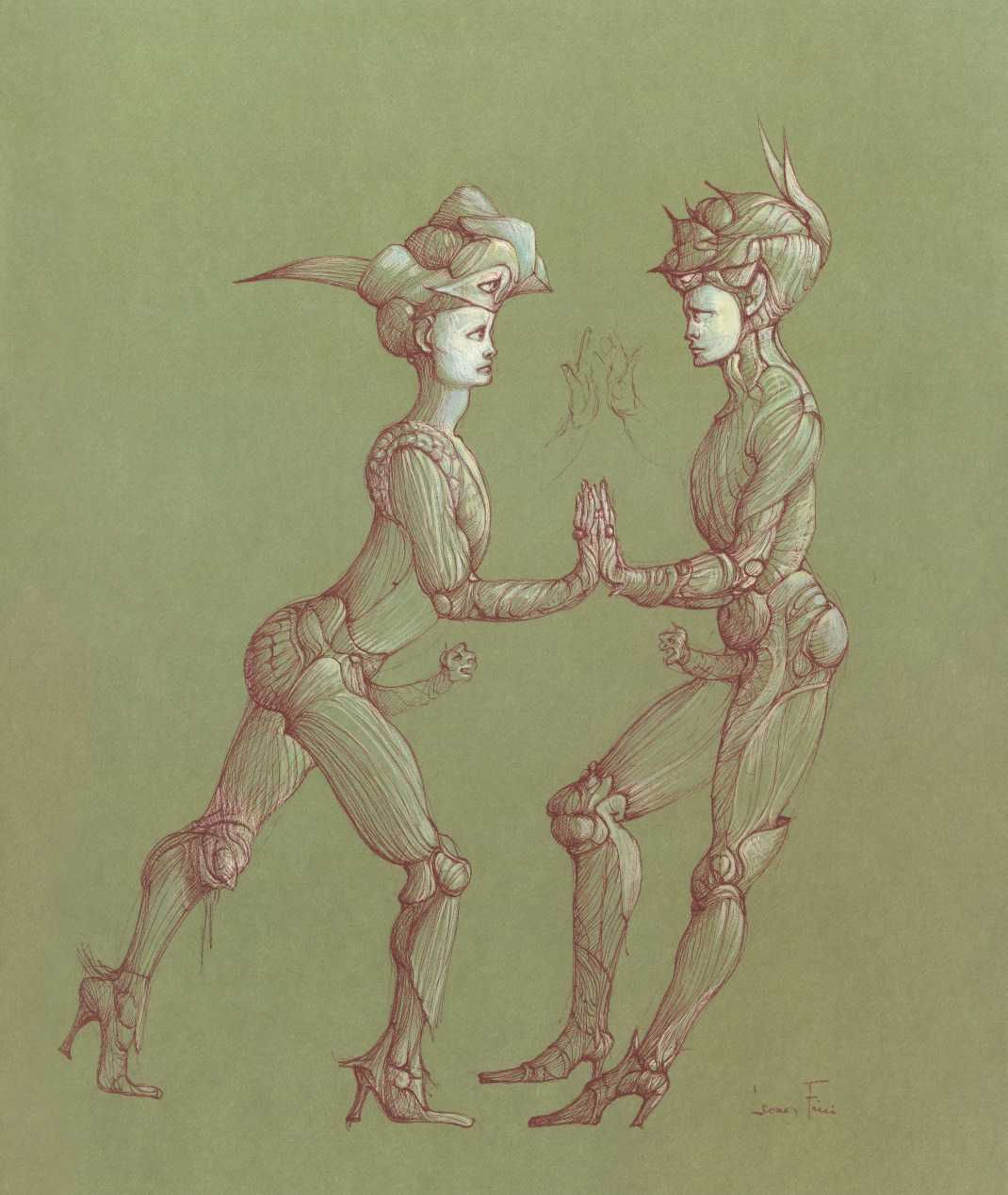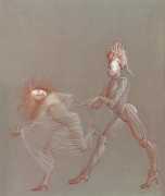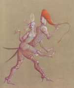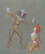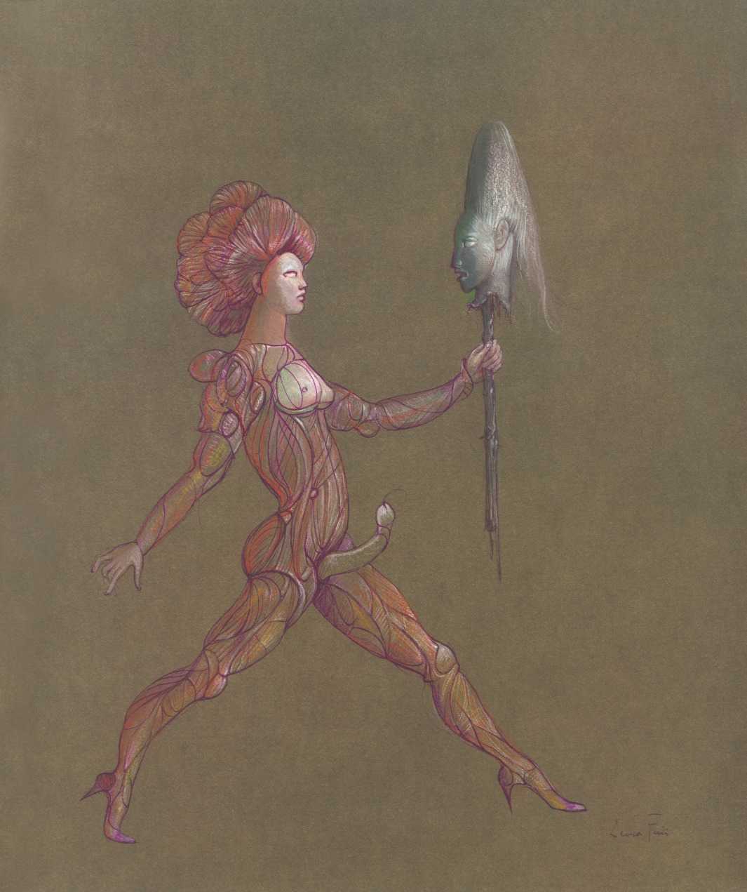 Leonor had clear and strongly-held ideas, in many ways far ahead of her time, about how women and men could coexist equally and supportively. ‘It is obvious that women have been mistreated by men for so long,’ she wrote. ‘They have always had to submit to men. It is no wonder that they are going on the offensive now. But I am not a feminist, and hate being claimed as a feminist. I like men who are intelligent, sensitive, have real understanding, men who are aware of their feminine side. I especially like homosexual men and androgynous men. I like to think of myself as androgynous.’ It is this androgyny which has confused many of Leonor Fini’s admirers, who have confused it with bisexuality. There is no doubt that Leonor loved women deeply – she was close to many of her female artistic contemporaries – but she was also passionately attracted to the right sort of men.