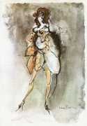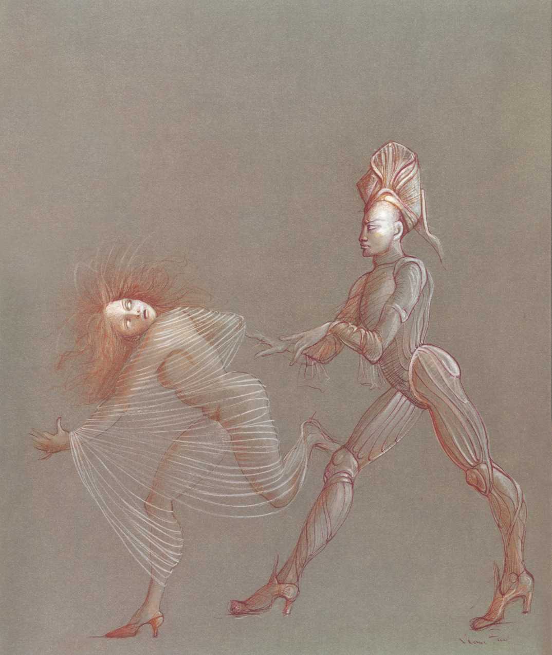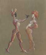 Leonor Fini is best known as a painter exploring the rich borderlands of realism and surrealism, but her long artistic career also included successful forays into set and costume design for theatre, ballet, opera and film, and even product design – she created the renowned torso-shaped perfume bottle for Schiaparelli’s perfume Shocking.
