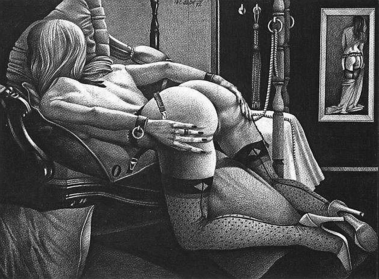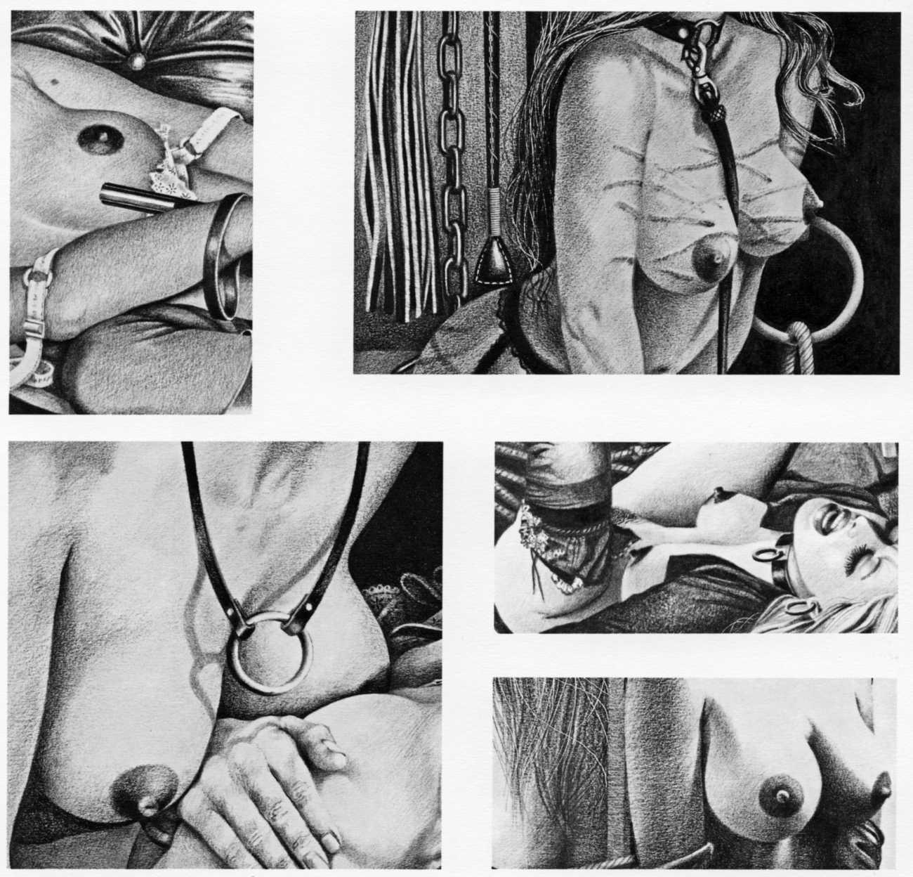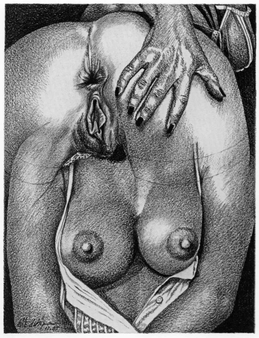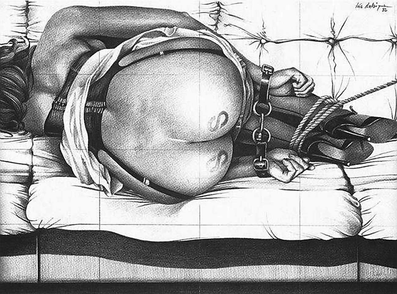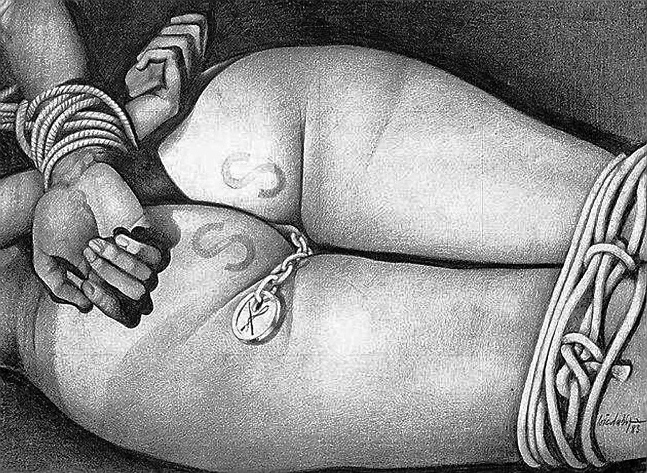 In the late 1970s, Loïc Dubigeon started to draw naked figures from life, first in charcoal and later in soft pencil. An acute observer of detail, composition, and the interplay of light and darkness, he used his architectural skills to create drawings of the human body which set him apart from most artists. In 1979 he exhibited some of his nudes alongside other works at an exhibition in Munich, which attracted the attention of the publisher Editions Borderie, who commissioned a series of illustrations inspired by Pauline Réage’s novel Histoire d’O.