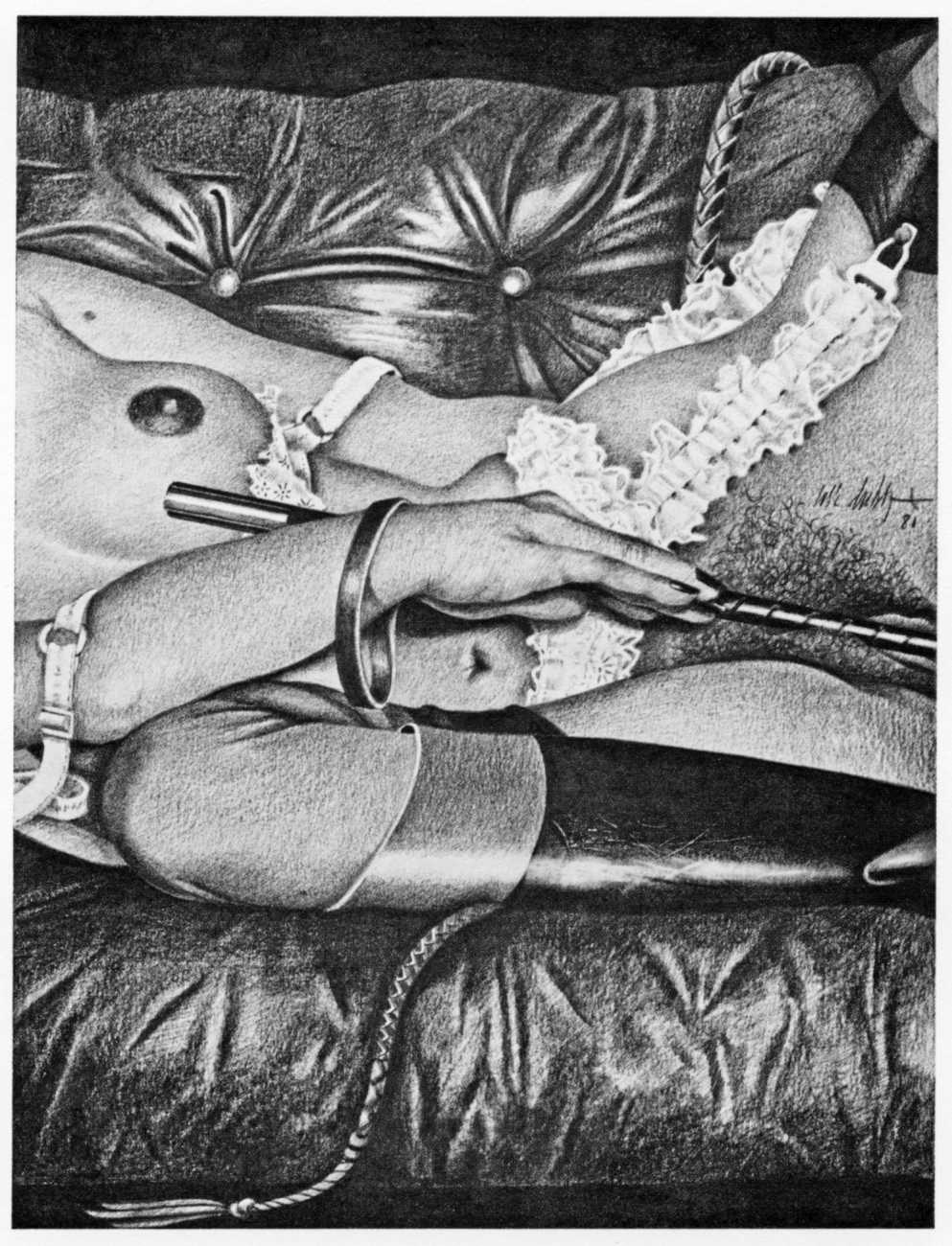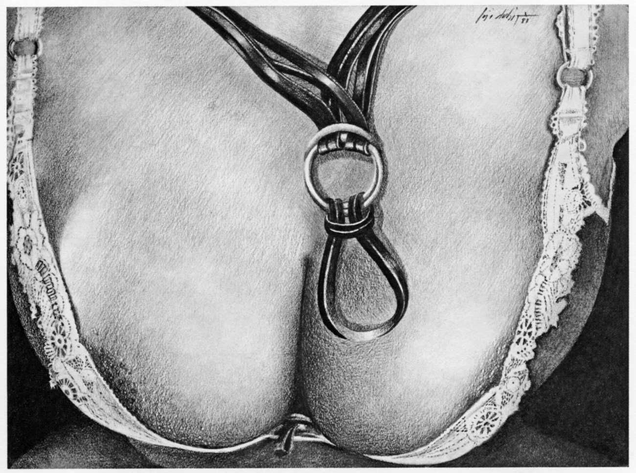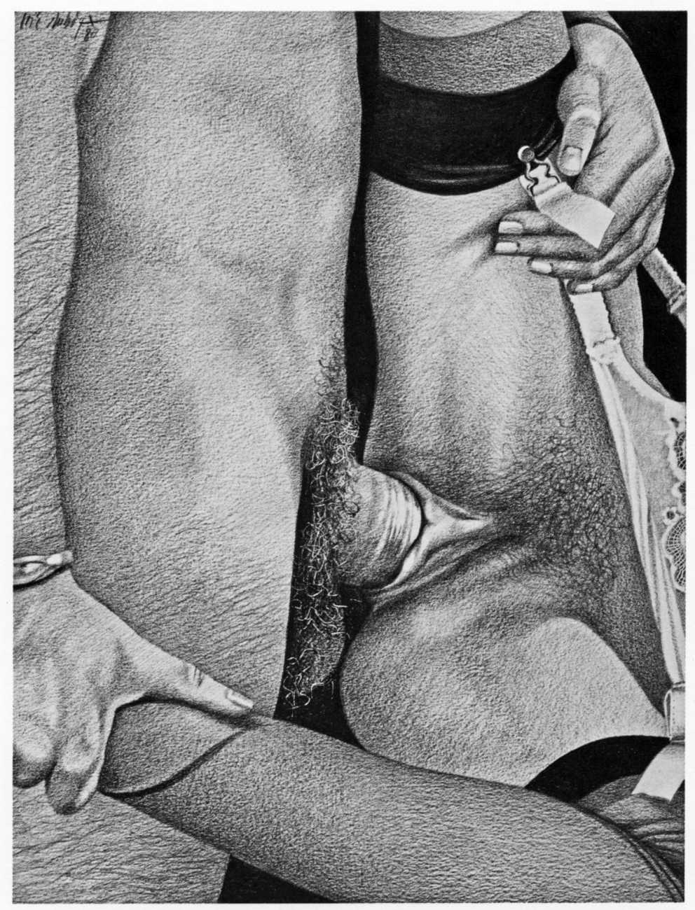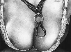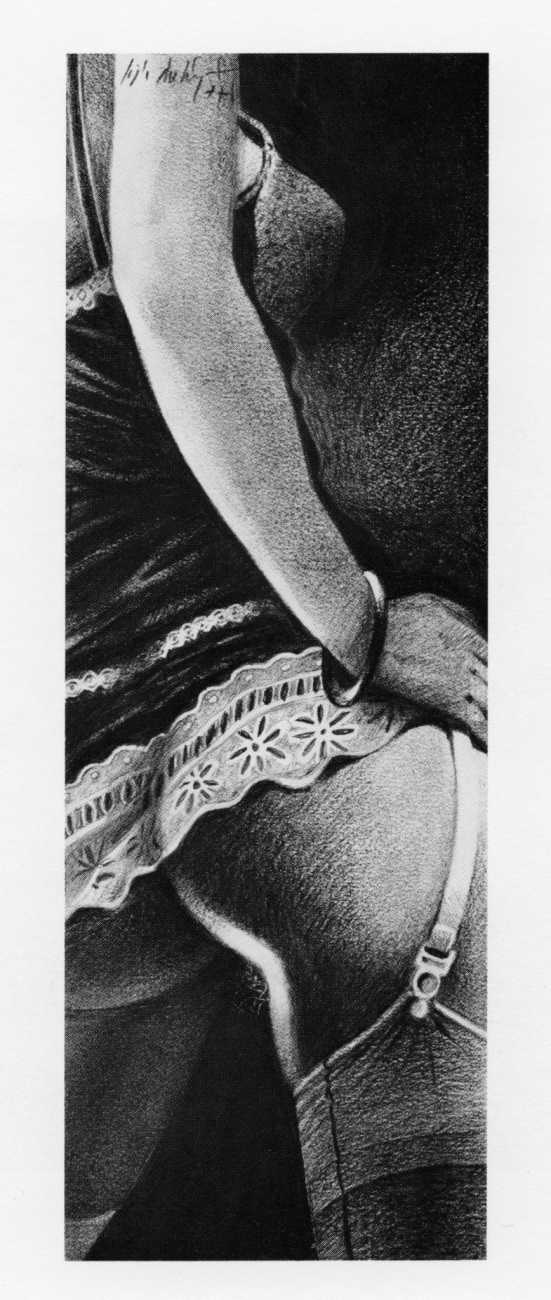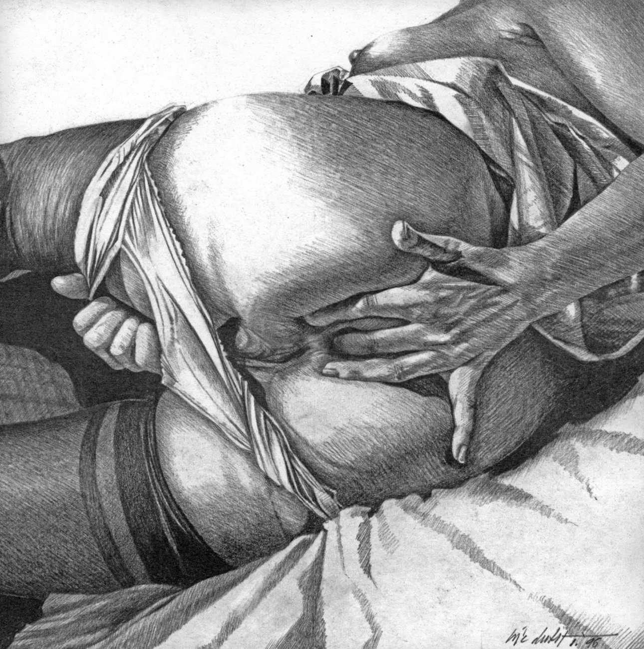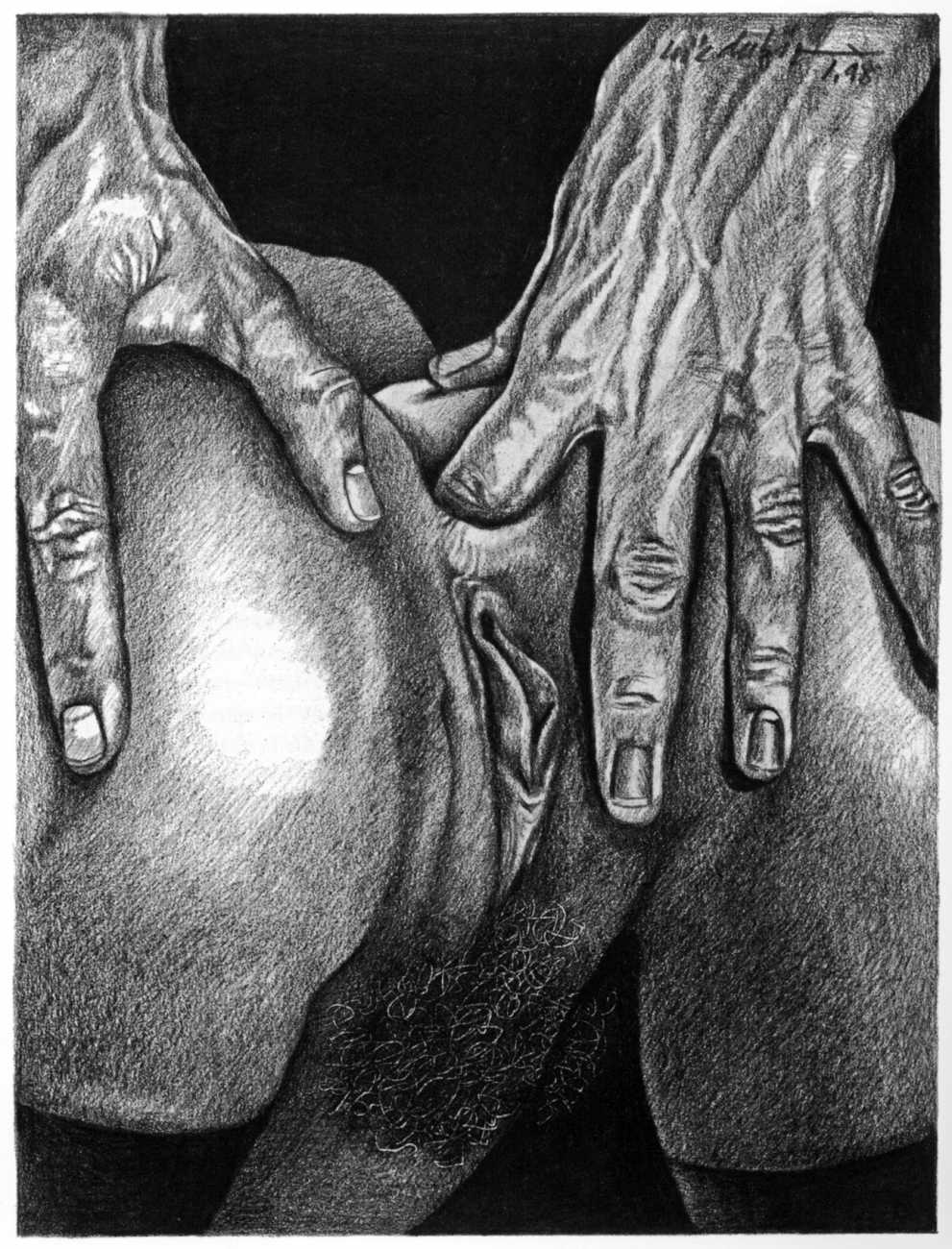 In the late 1970s, Loïc Dubigeon started to draw naked figures from life, first in charcoal and later in soft pencil. An acute observer of detail, composition, and the interplay of light and darkness, he used his architectural skills to create drawings of the human body which set him apart from most artists. In 1979 he exhibited some of his nudes alongside other works at an exhibition in Munich, which attracted the attention of the publisher Editions Borderie, who commissioned a series of illustrations inspired by Pauline Réage’s novel Histoire d’O.
