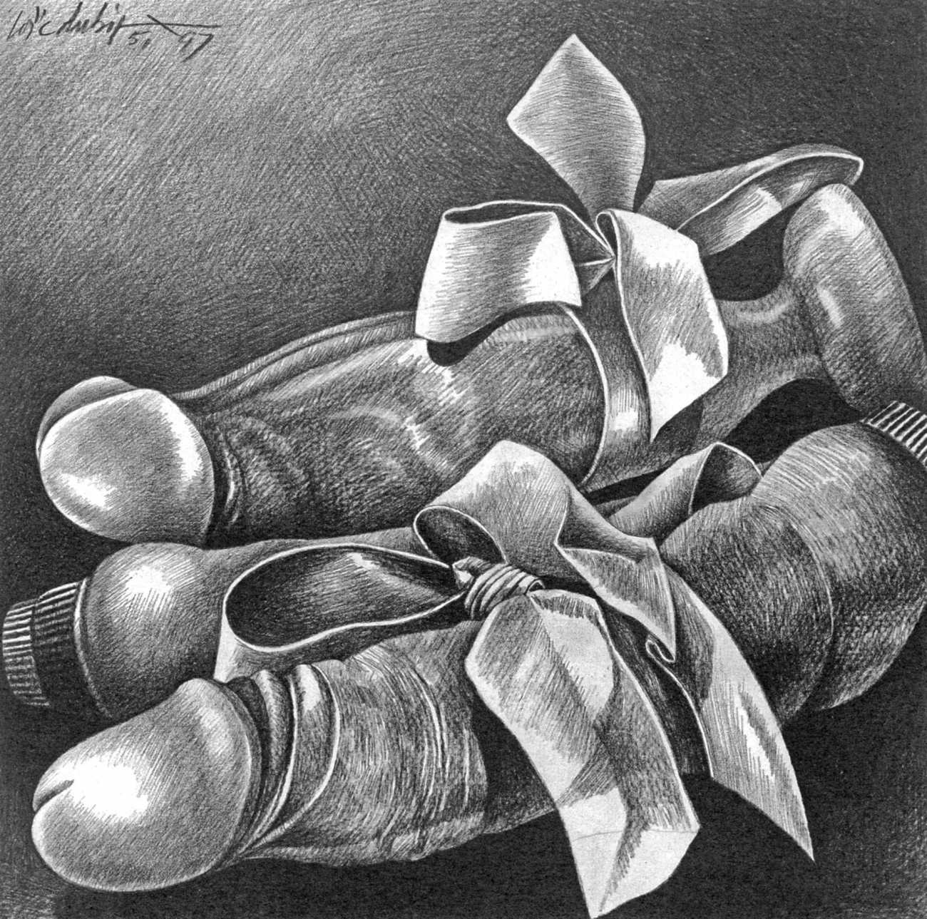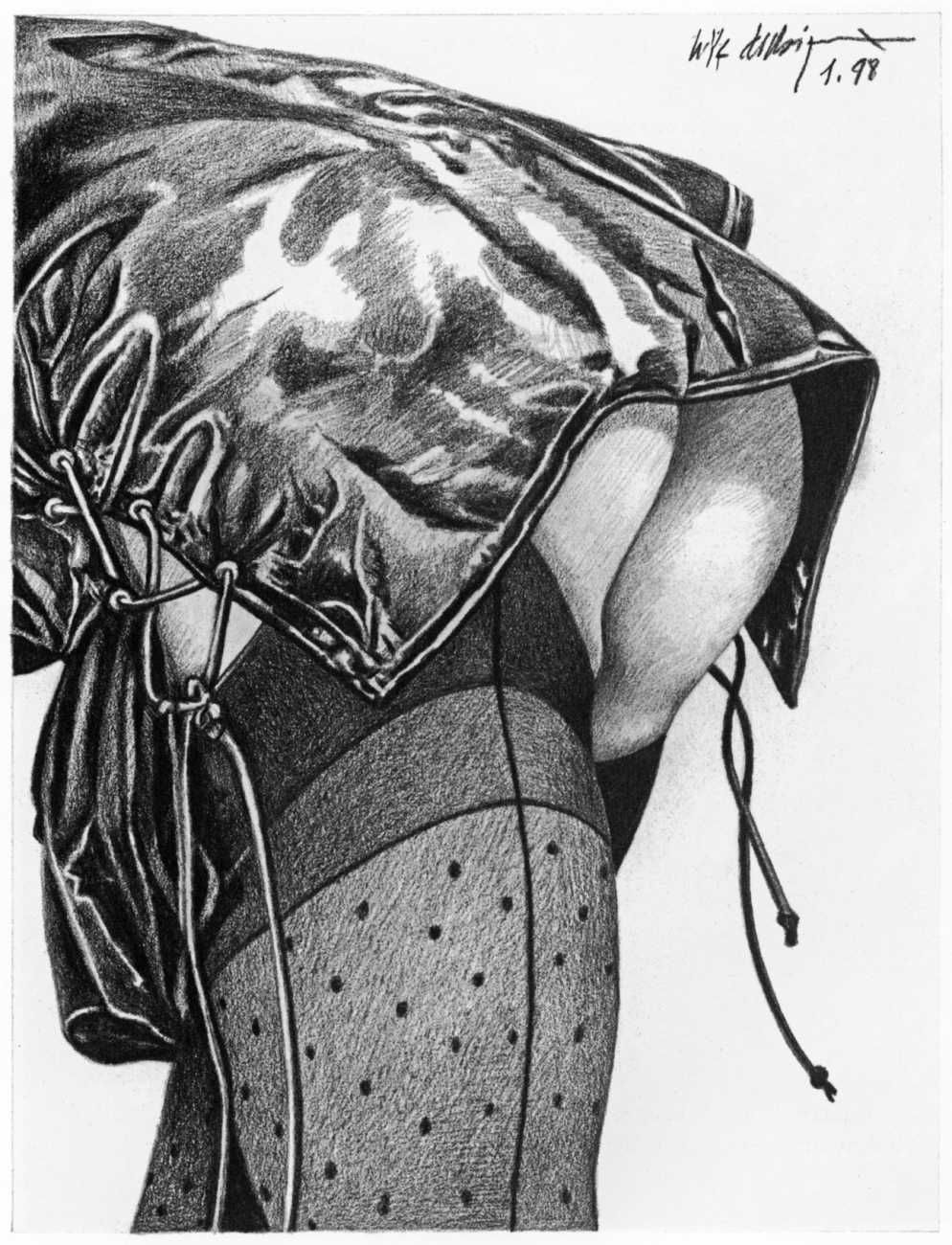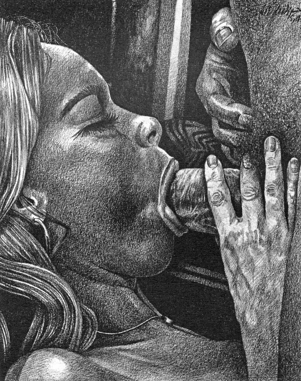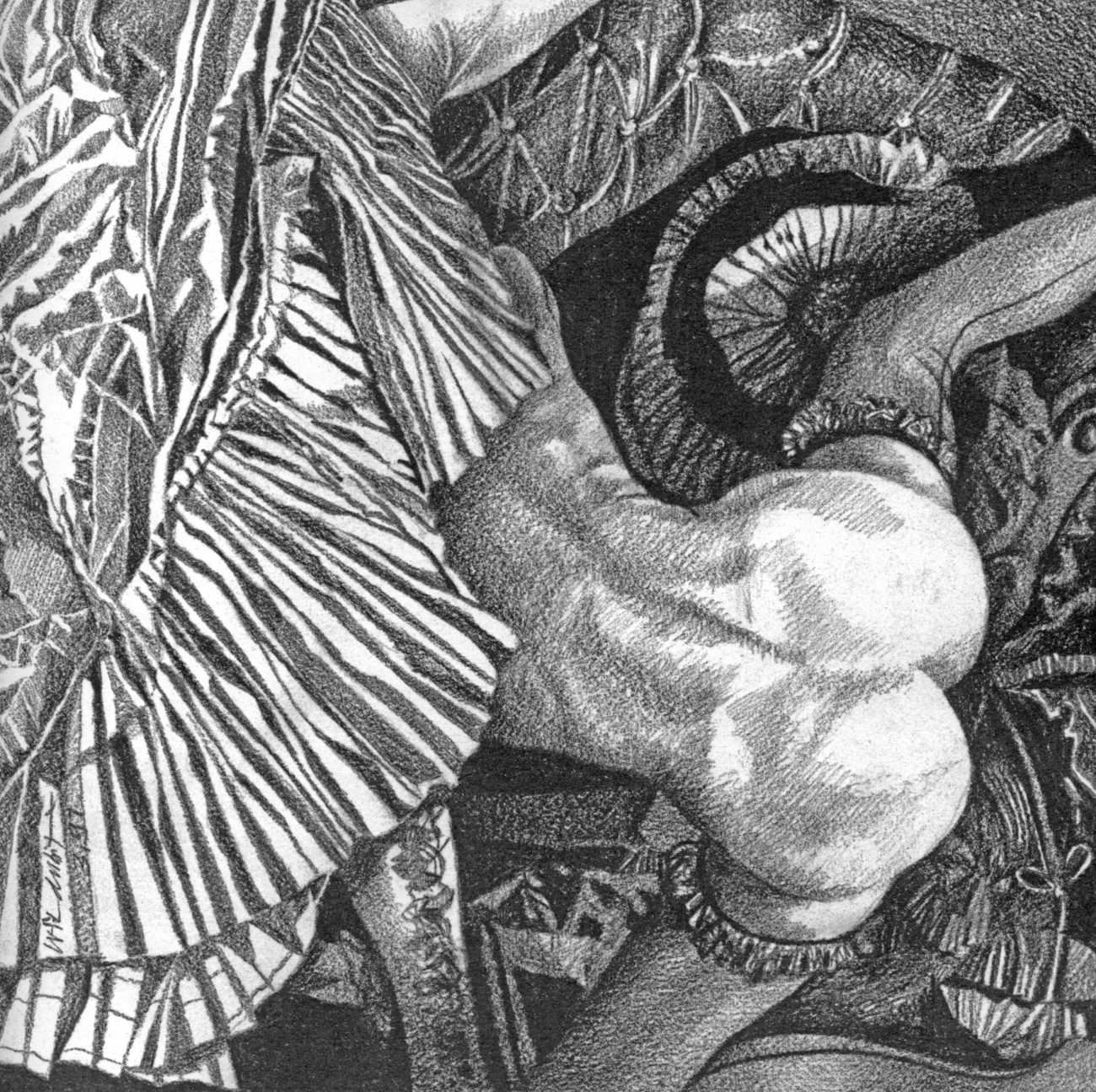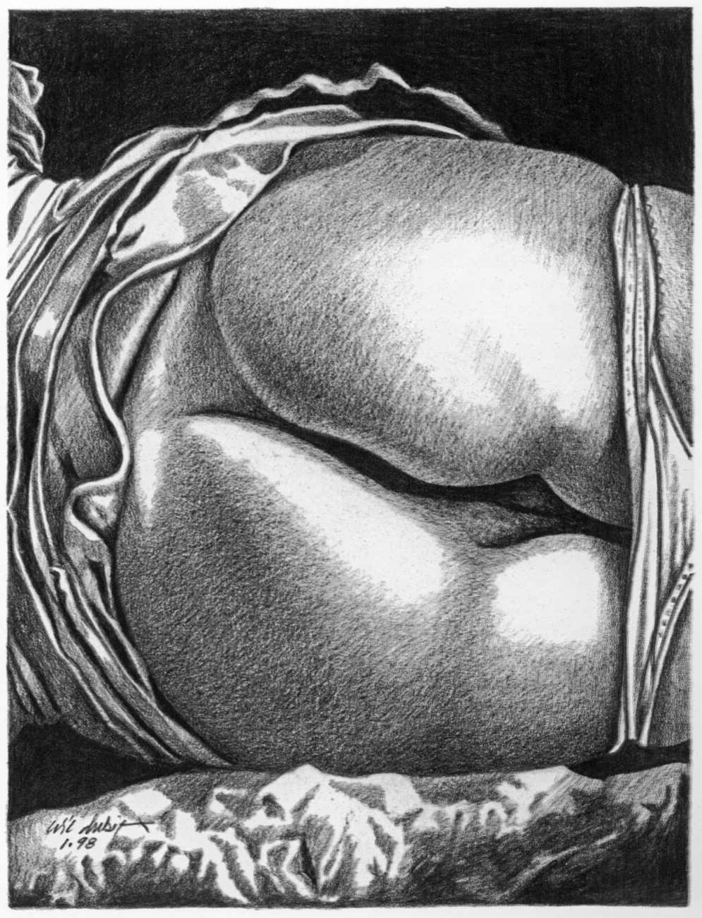 In the late 1970s, Loïc Dubigeon started to draw naked figures from life, first in charcoal and later in soft pencil. An acute observer of detail, composition, and the interplay of light and darkness, he used his architectural skills to create drawings of the human body which set him apart from most artists. In 1979 he exhibited some of his nudes alongside other works at an exhibition in Munich, which attracted the attention of the publisher Editions Borderie, who commissioned a series of illustrations inspired by Pauline Réage’s novel Histoire d’O.